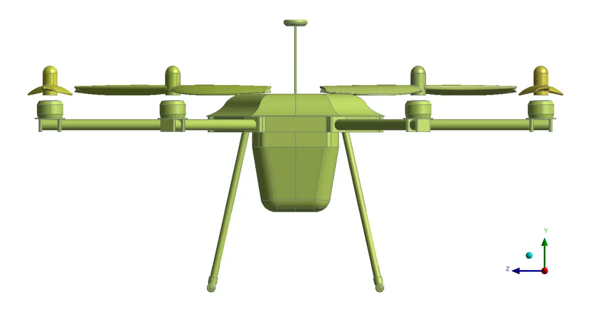 - Separate propellers and main body of drone for easy create multiple computational domain (for sliding mesh, MRF... to simulate the rotational motion)