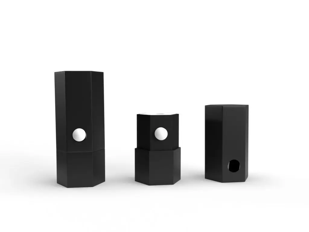 Hexagon Childproof Button Box for cartridge packaging, childproof packaging with foam insert.