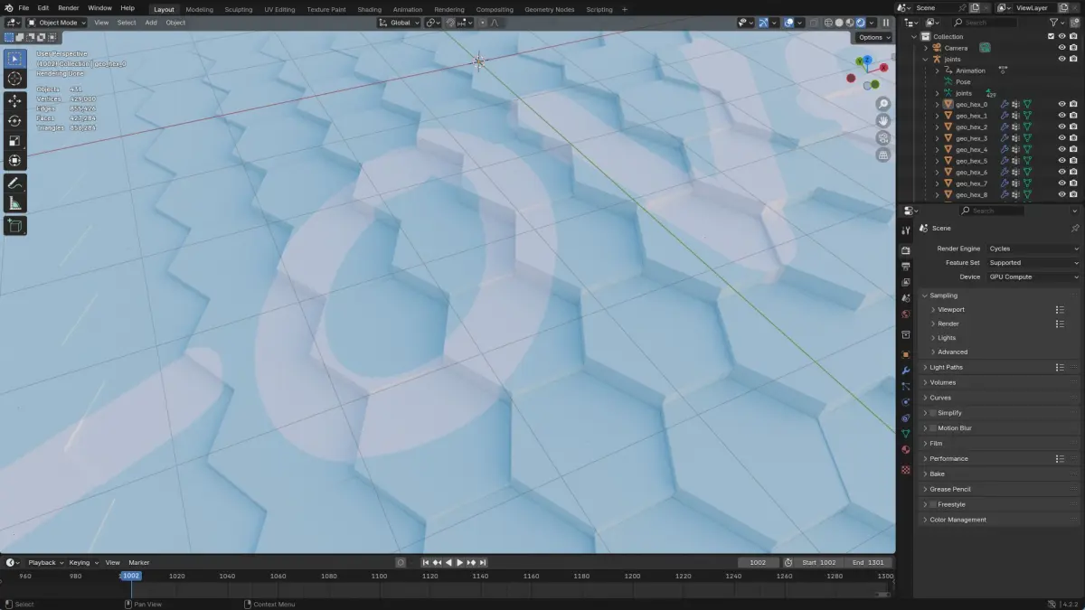 Abstract Hexagon grid seamless loop animation (10s, 300 frames).Animation is baked into joints. Also there is a version with baked animation into objects itself.Geometry contain 2 uv sets.Package contains: FBX 2020.3.6, Blender 4.2.3, Maya 2025, 3dsmax 2022, cinema4D 2024.5.1
