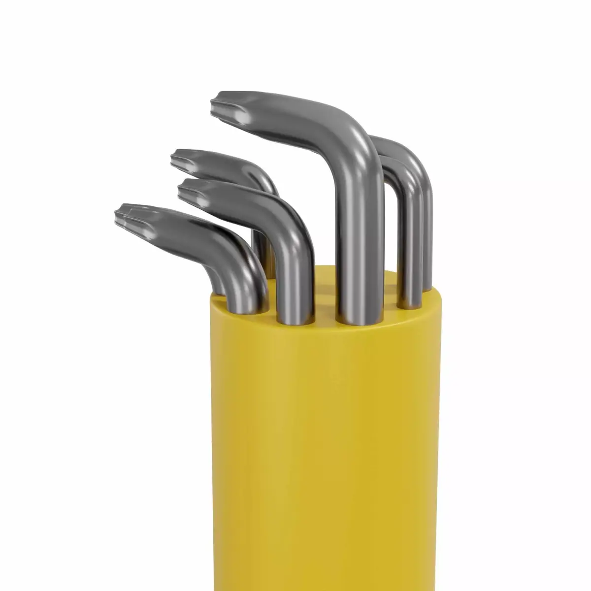 A detail industrial working tool or matchine or electric item named Hexagon key set. Its a photorealistic 3d model made in blender, than use as any acctractive decor item for product visualization.