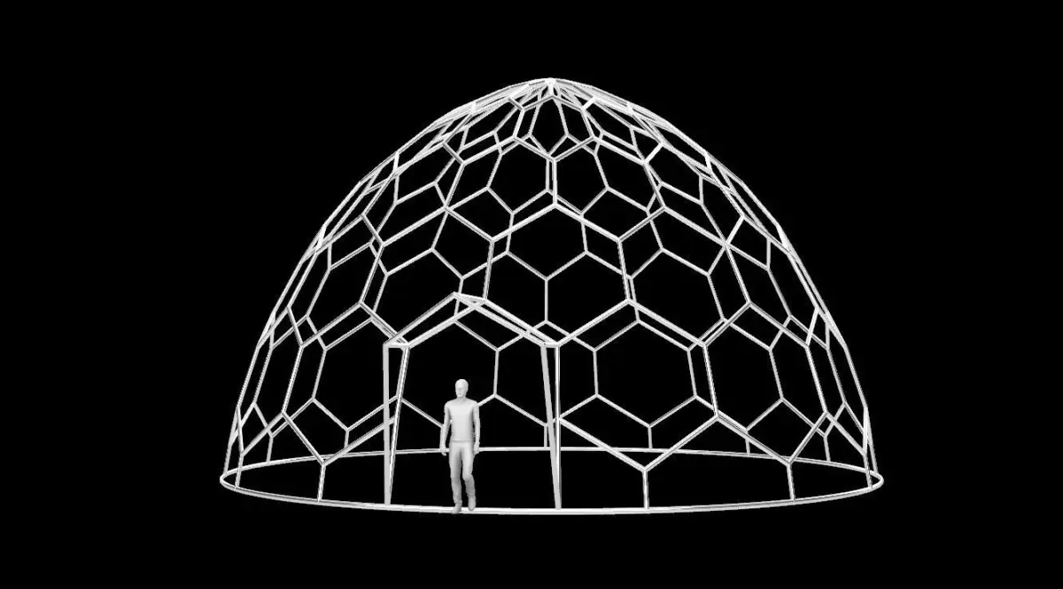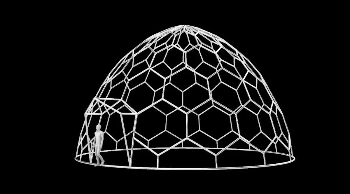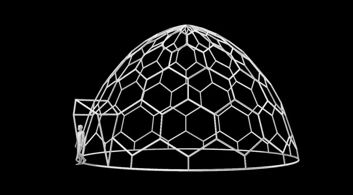 Hexagonal Dome structure Geodoesic Like Wireframe 3D model
