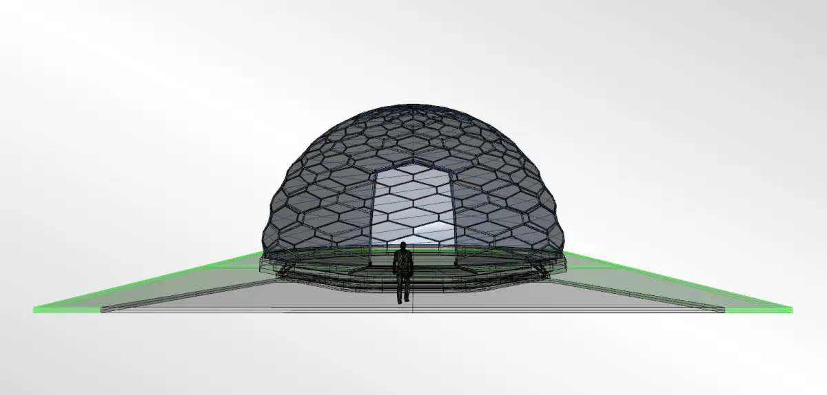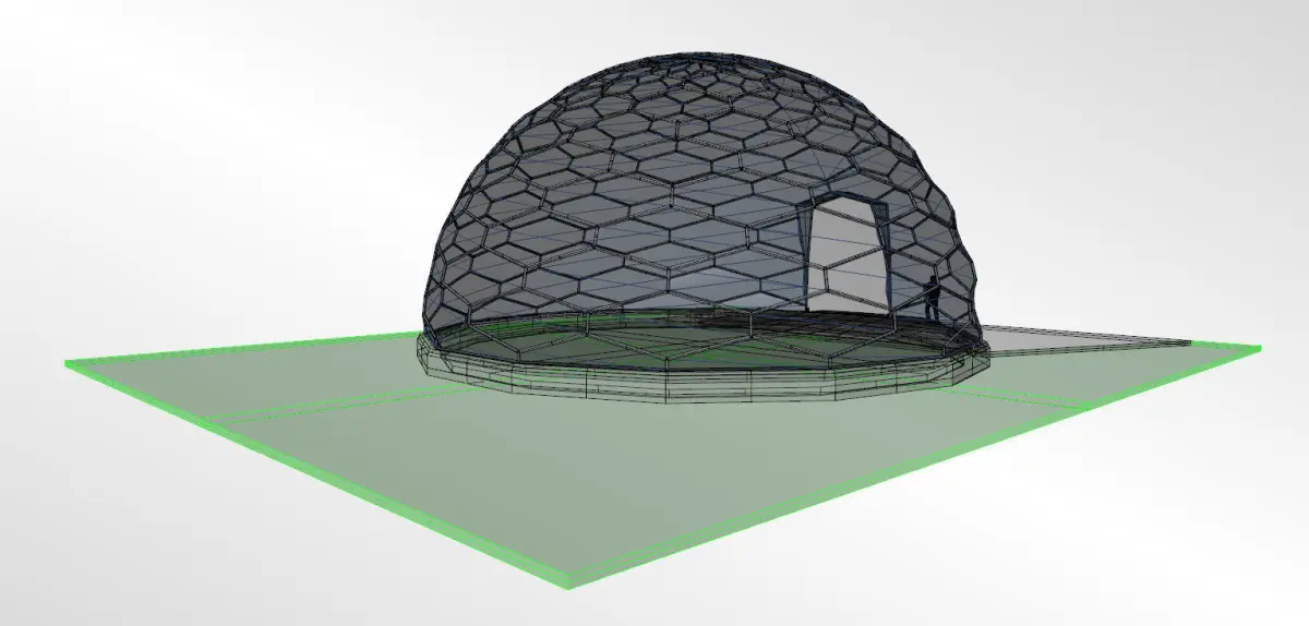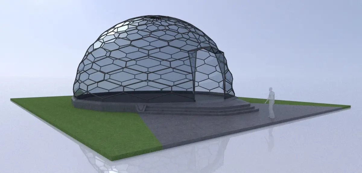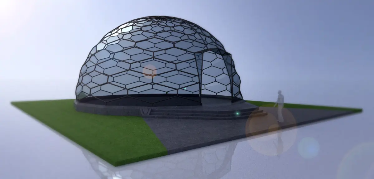 This is a Hexagonal geodesic dome like structure with entry made using Rhino 3D and Grasshopper plugin. Rhinoceros is primarily a free form surface modeler and Grasshopper is a visual programming language and environment that combined create unique designs.