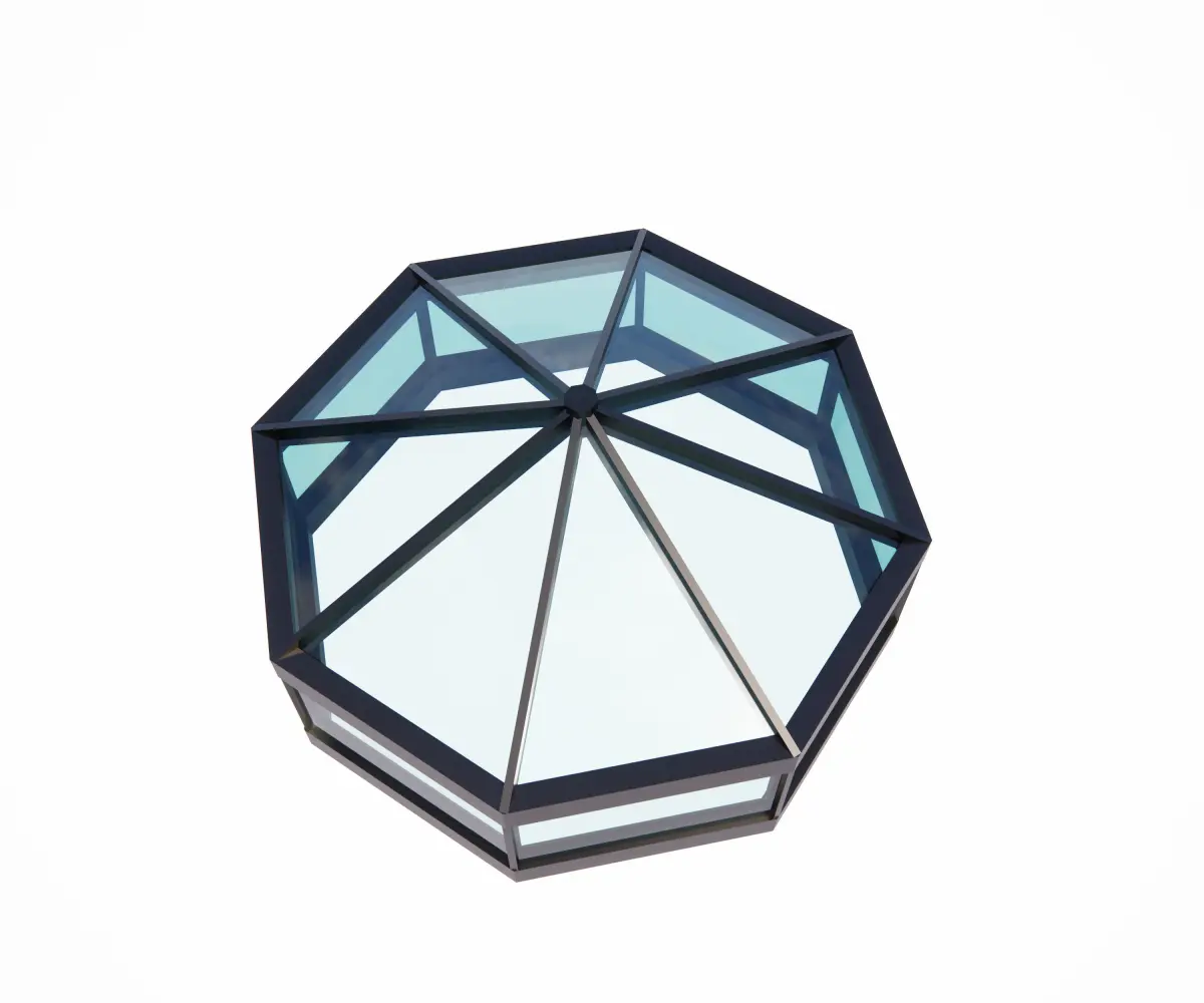 Modern metal/painted wood and glass dome; 10' width; 5.5' in height