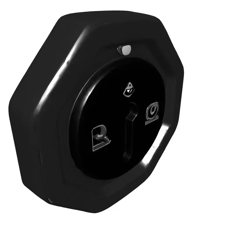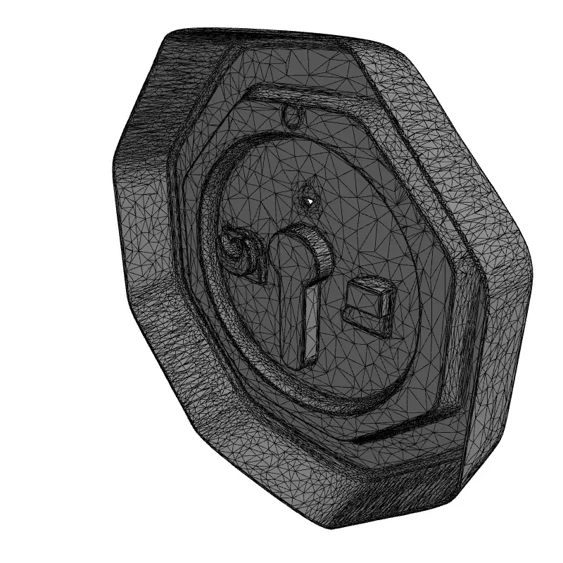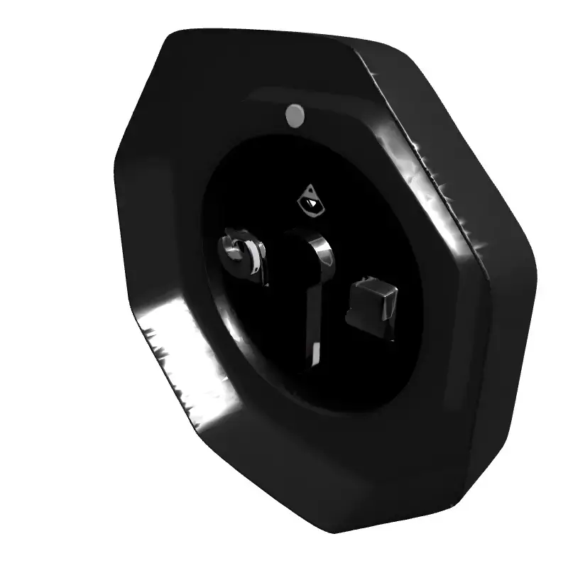 This highly detailed 3D model represents a modern or futuristic control knob or indicator panel, featuring a distinct hexagonal shape and a central circular depression with a prominent keyhole design. The recessed surface is adorned with abstract symbols, including a drip or hazard icon at the top, a magnifying glass or 'R' symbol on the left, and the text 'Or' with an underline on the right, suggesting a complex functional or status display. This versatile asset is ideal for a wide range of applications, including enhancing industrial environments, sci-fi scenes, or contemporary interior visualizations. It can serve as a detailed prop in video games, an interactive element in AR/VR experiences, a conceptual component in product design mockups, or a unique detail in architectural renders. The model is crafted with clean topology, making it suitable for both optimized real-time applications and high-quality static renderings where detail is paramount. Its geometry is optimized for smooth subdivision, ensuring excellent detail at various distances, and it comes fully UV unwrapped for easy texture application. Supporting popular file formats such as GLB, OBJ, STL, ABC, DAE, FBX, USD, and PLY, this model is ready for immediate integration into your projects. It features PBR-ready materials for realistic reflections and lighting interactions, providing a professional finish to any digital scene.