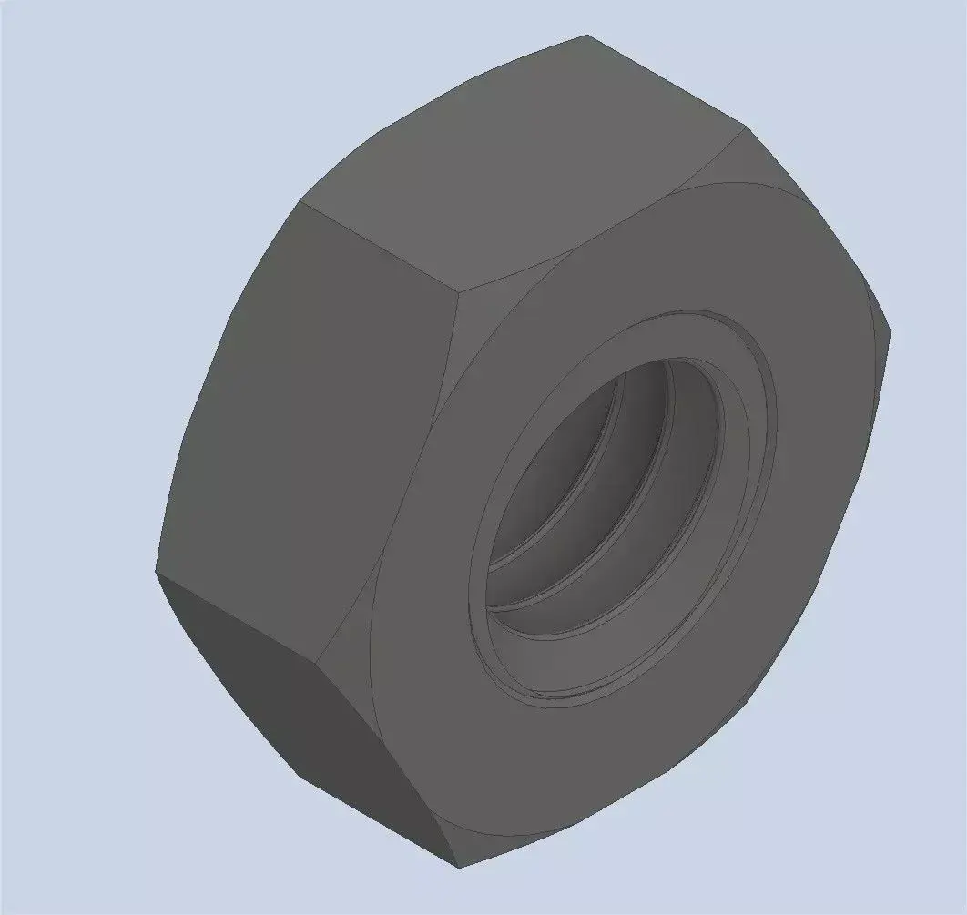 Autodesk Inventor model. Hexagonal Nut M6. This product has been designed with high precision and real dimensions and can be used in all programs and all uses, as long as they use one of the following extensions (.ipt/.stp/.obj/.mtl) and you can modify its measurements or appearance through the Autodesk Inventor program or similar.