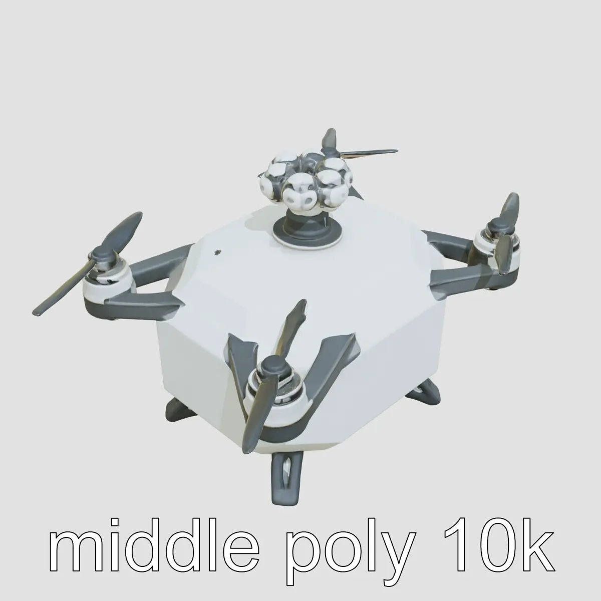 Hexagonal Rotorcraft Drone featuring a sturdy hexagonal container body design with 4 rotatable rotors mounted on trapezoidal brackets. It is topped with a high-tech sensory 'crown' comprising 12 camera-spheres. Highly versatile, the model is suitable for integration in films, simulations, or games needing futuristic drones. Its multiple levels of detail are perfect for balancing performance and visual fidelity, making it compatible with all major rendering solutions including 3ds Max, Maya, and Blender, as well as game engines such as Unity and Unreal. Textures are PBR, including Diffuse, NormalMap, and reflection, all at 4096*4096 resolution for premium quality rendering. Models are fully unwrapped with no overlapping UVs, ensuring seamless texturing. If you like this model, please give a thumbs up and leave a comment.