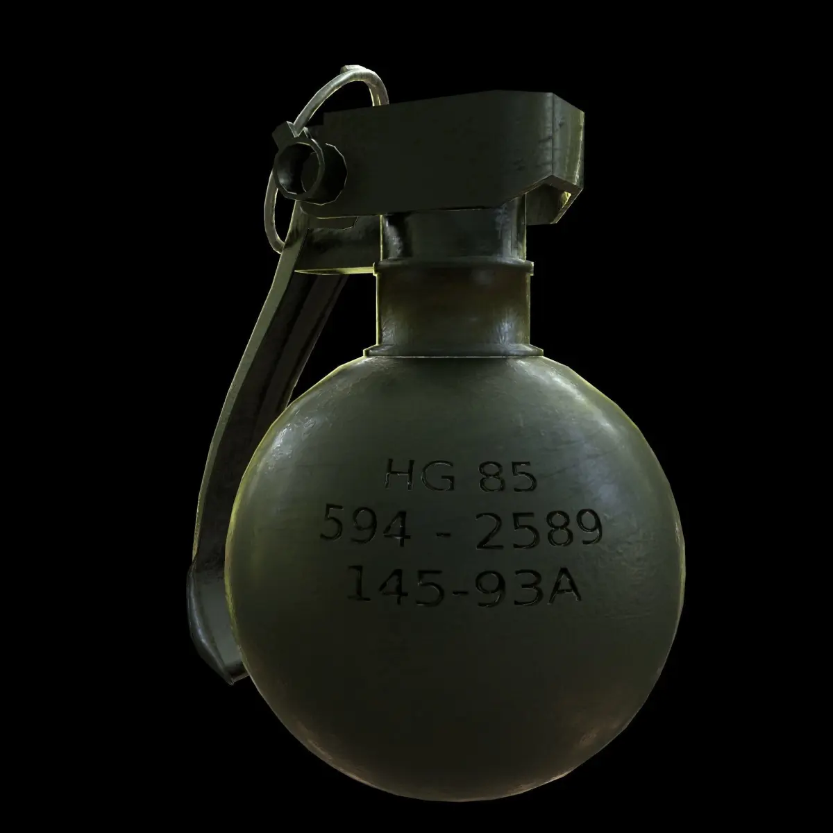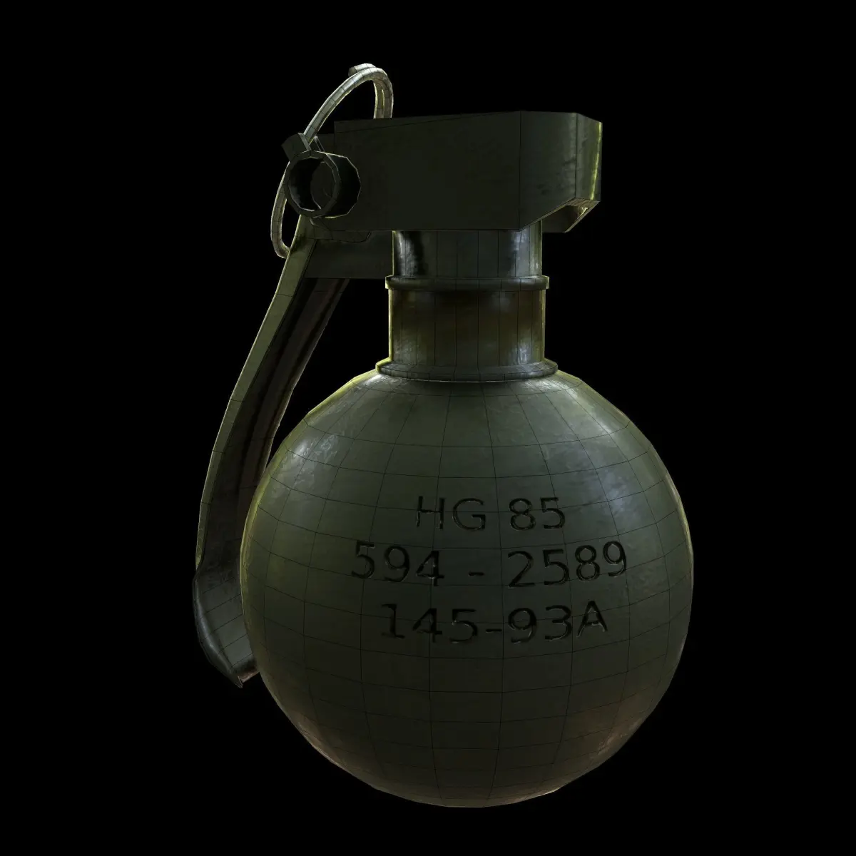 Hg 85 hand grenade model.Clean, low-poly game ready geometry,with unwrapped uv-s.3 level of detail,and the highpoly, subdivision ready model included.2k textures for PBR materials: albedo,metallic,roughness,specular, normal