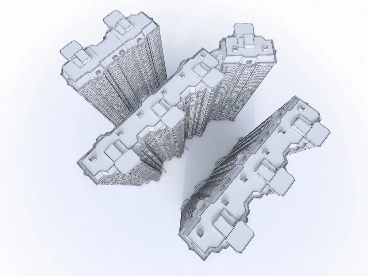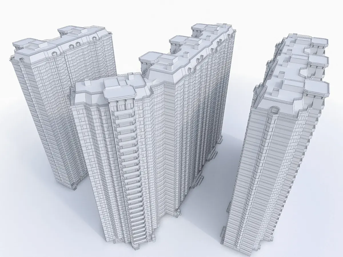 This is a model of real world preliminary design of the 25-storey Apartment Blocks Set residential building made by professional architect. Mesh is low-poly, allows you to easily build up the additional details, edit geometry. Originally created with 3ds Max 2011
