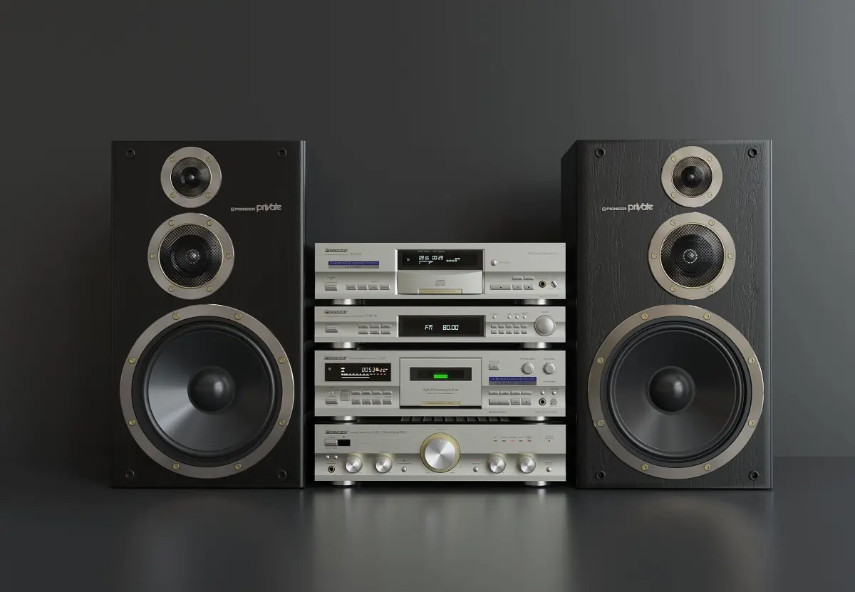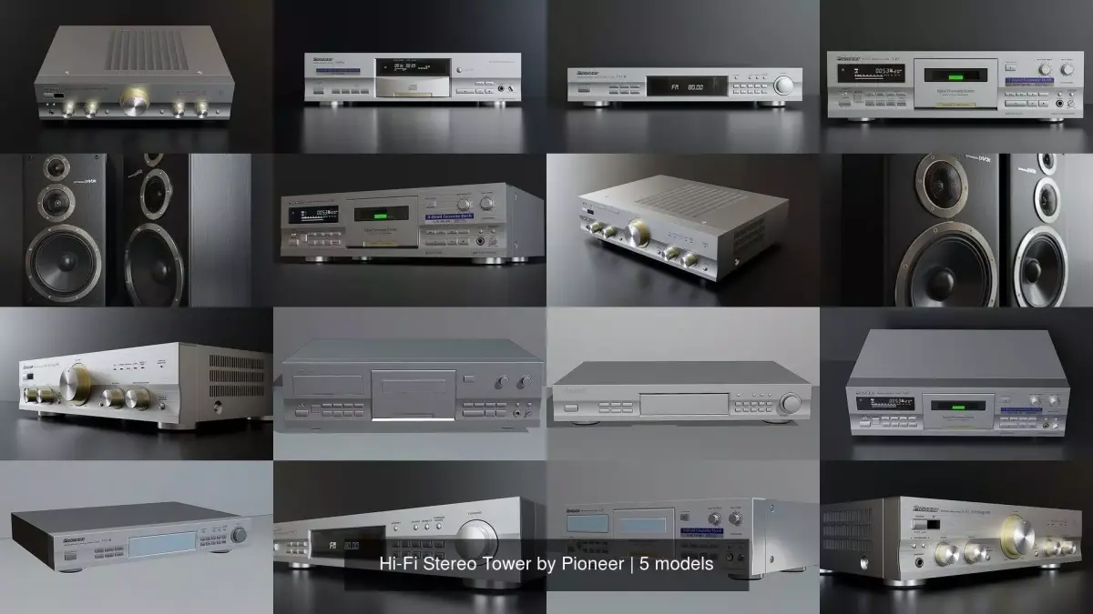The collection consists of several objects: amplifier, cassette deck, tuner, CD player and two speakers. All materials are native blender. Procedural textures were used. The rest of the necessary textures (png images) are packed in archives.