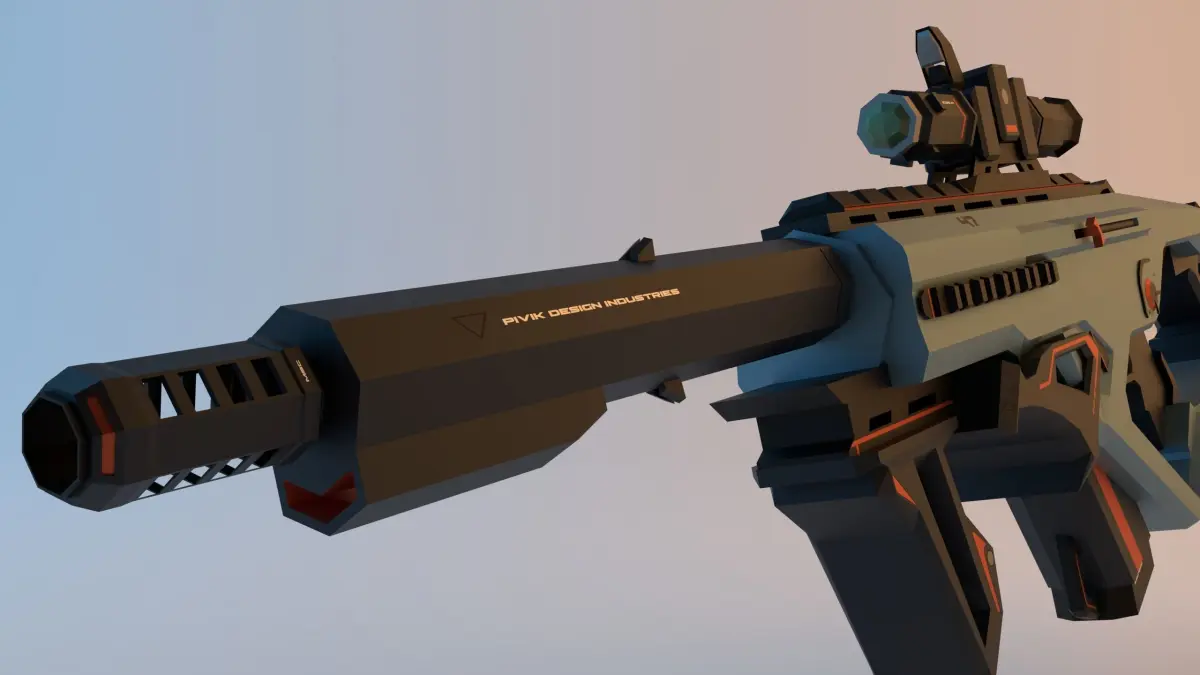 The automaton of the future 2047.Developed by PivikDesign Inc. named after Pivovarov in the early 40s of the XXI century, under the cartridge 5.56x45mm.This is a medium-sized machine gun with a full-size barrel.It is offered as an armament for mobile autonomous units operating without the support of heavy equipment.The modularity of the design, the multi-variant configuration make the weapon very interesting for further refinement.