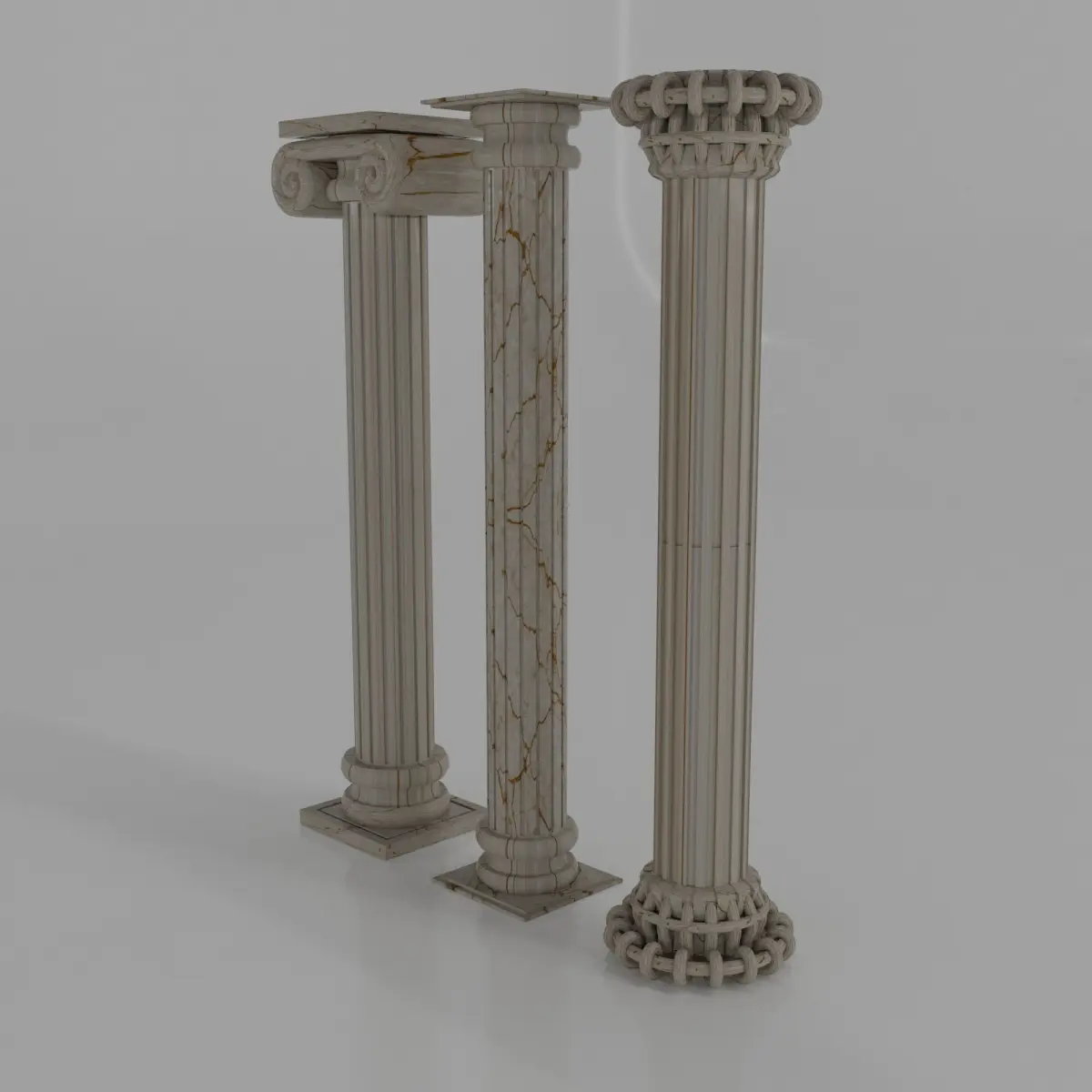 Elevate your architectural visualizations, game environments or VR/AR scenes with this premium set of three high‑poly marble columns, each featuring a distinct classical‑inspired capital design: