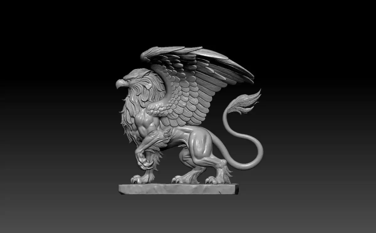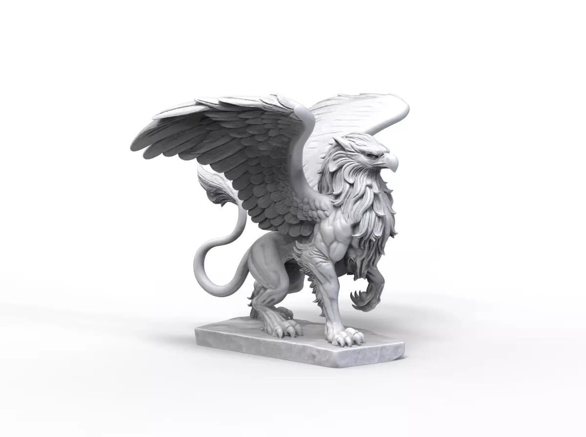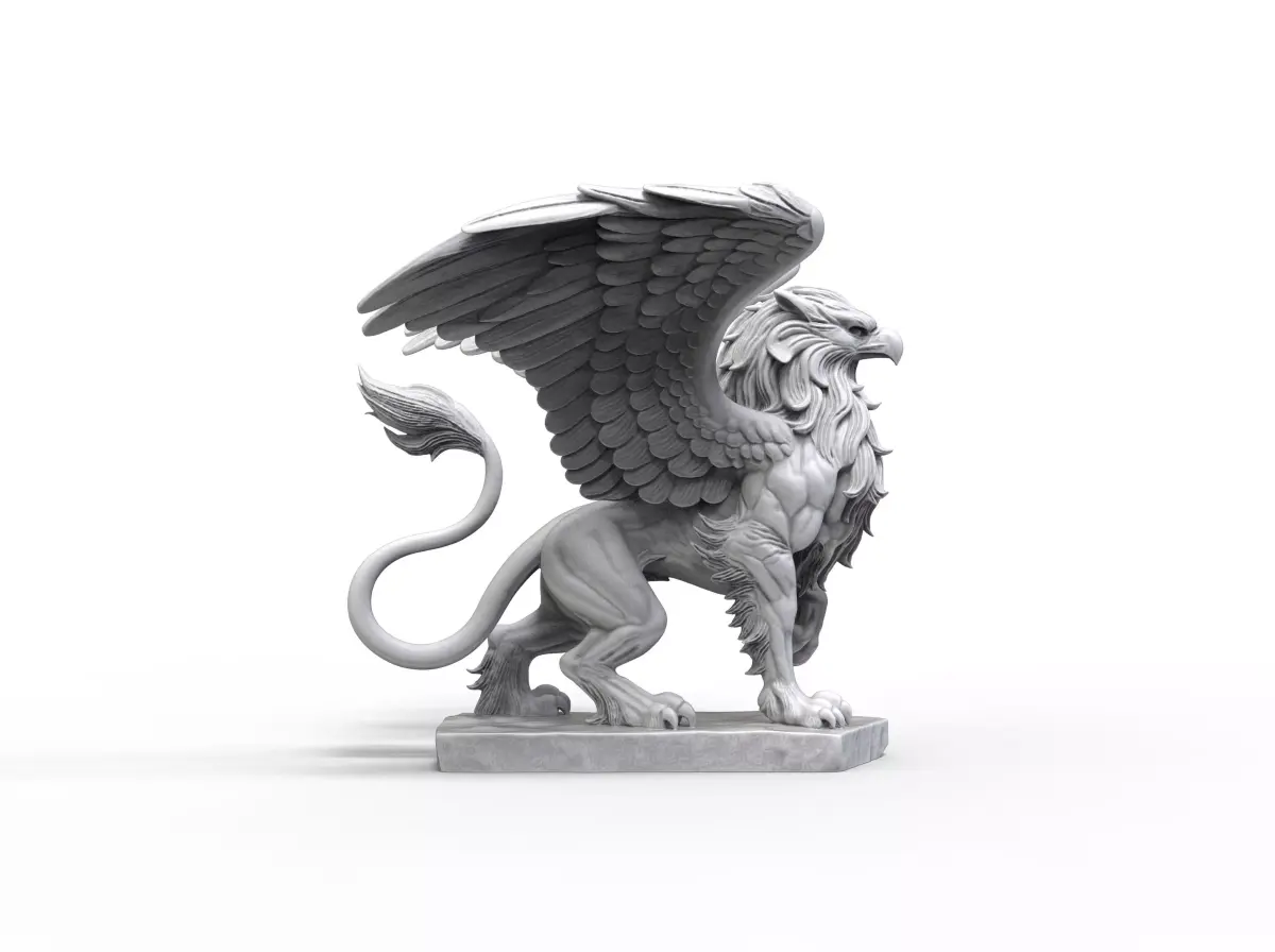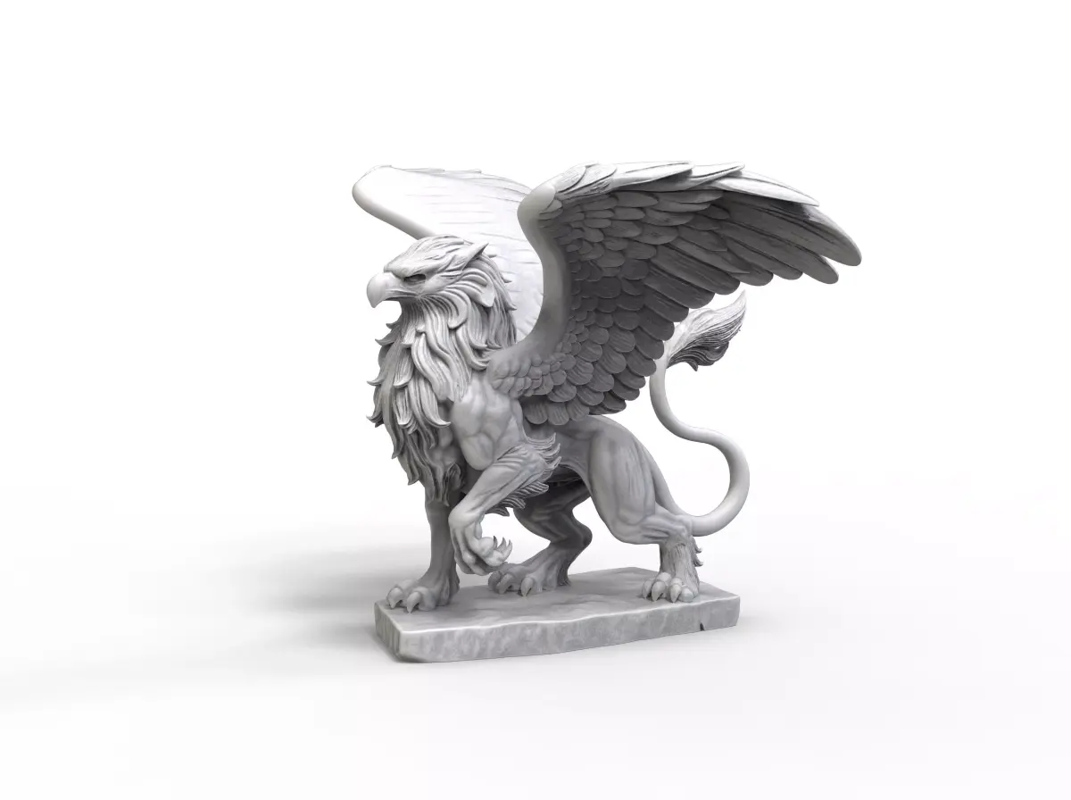 This is a premium-quality Griffin sculpture, created with professional ZBrush detailing and clean shapes.The creature combines the majestic eagle head and wings with a muscular lion body, standing on a stone base to showcase its full power and hero posture.
