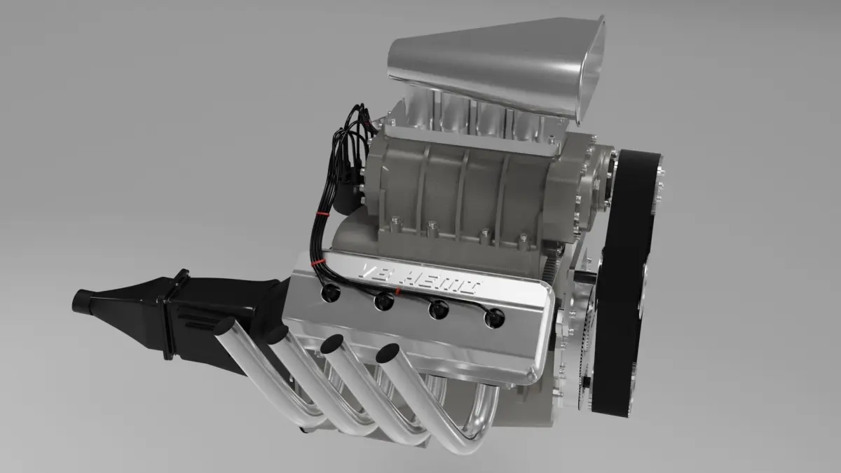 Modeled with reference to the real engine, it’s modeled accurately with the major parts present and easy to view. The high detail is great for renders. Drop this into your next car model and you have instant hotrod.