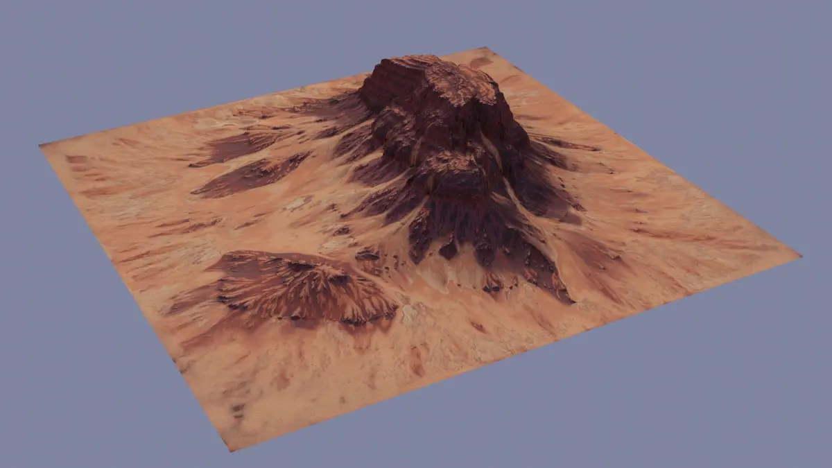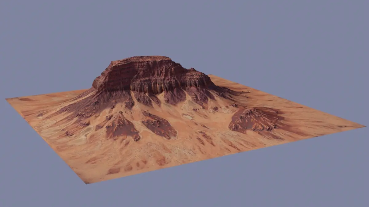 This is a highly detailed model of an eroded sandstone mountain ready to render with cycles in Blender. Alternatively, you can aslo import the mesh (or apply the height map to a plane) and apply the normal and colour maps to it in any other modeling software.Included: