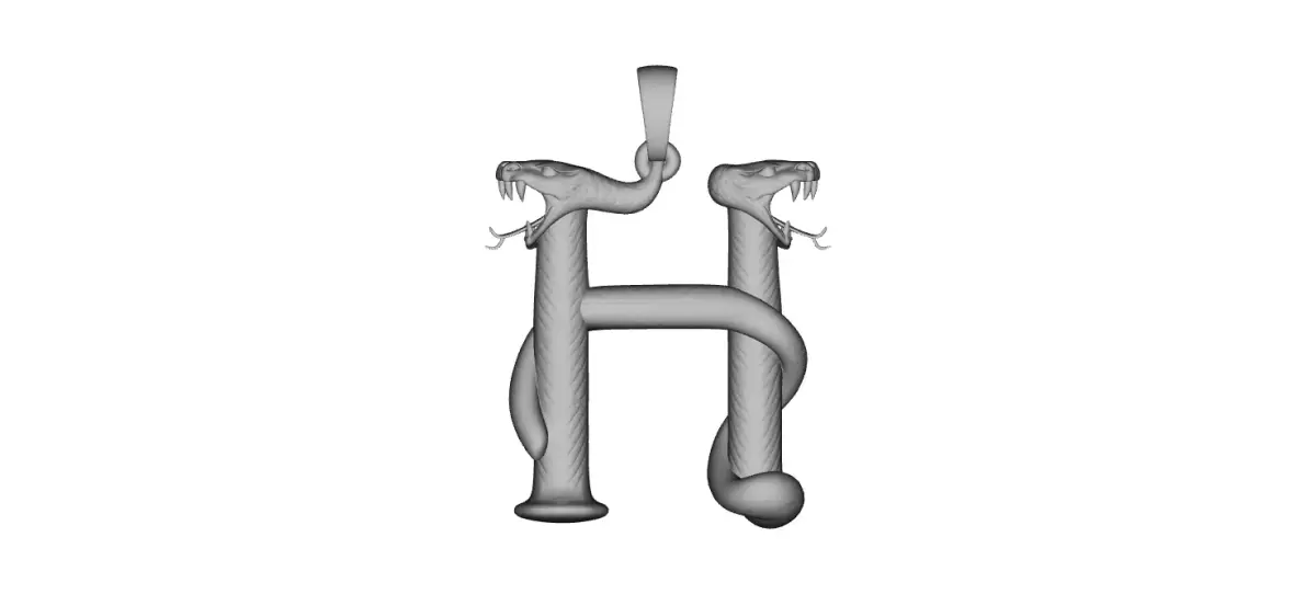 High-detail Snake Letter H pendant sculpted in ZBrush, featuring a bold serpent form with detailed scales and smooth flowing curves shaped into the letter H. This model is prepared for CAM-based resin 3D printing and is suitable for SLA, DLP, and LCD printers. Ideal for jewelry prototypes, display pieces, and master resin prints. Not intended for CNC machining.