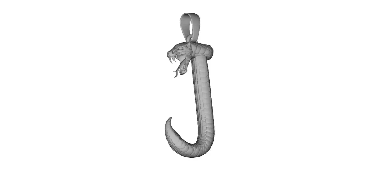 High-detail Snake Letter J pendant sculpted in ZBrush, featuring a dynamic serpent form with detailed scales and smooth flowing curves shaped into the letter J. This model is prepared for CAM-based resin 3D printing and is suitable for SLA, DLP, and LCD printers. Ideal for jewelry prototypes, display pieces, and master resin prints. Not intended for CNC machining.