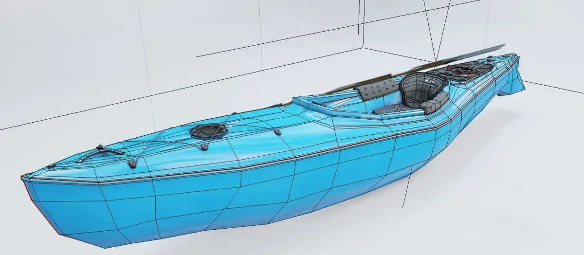 highly detailed kayak model with pbr texturethis can also be used as a low poly game asset if no subvidision or smoothing is added to the meshThe blend file has all modifiers maximally close to the original.