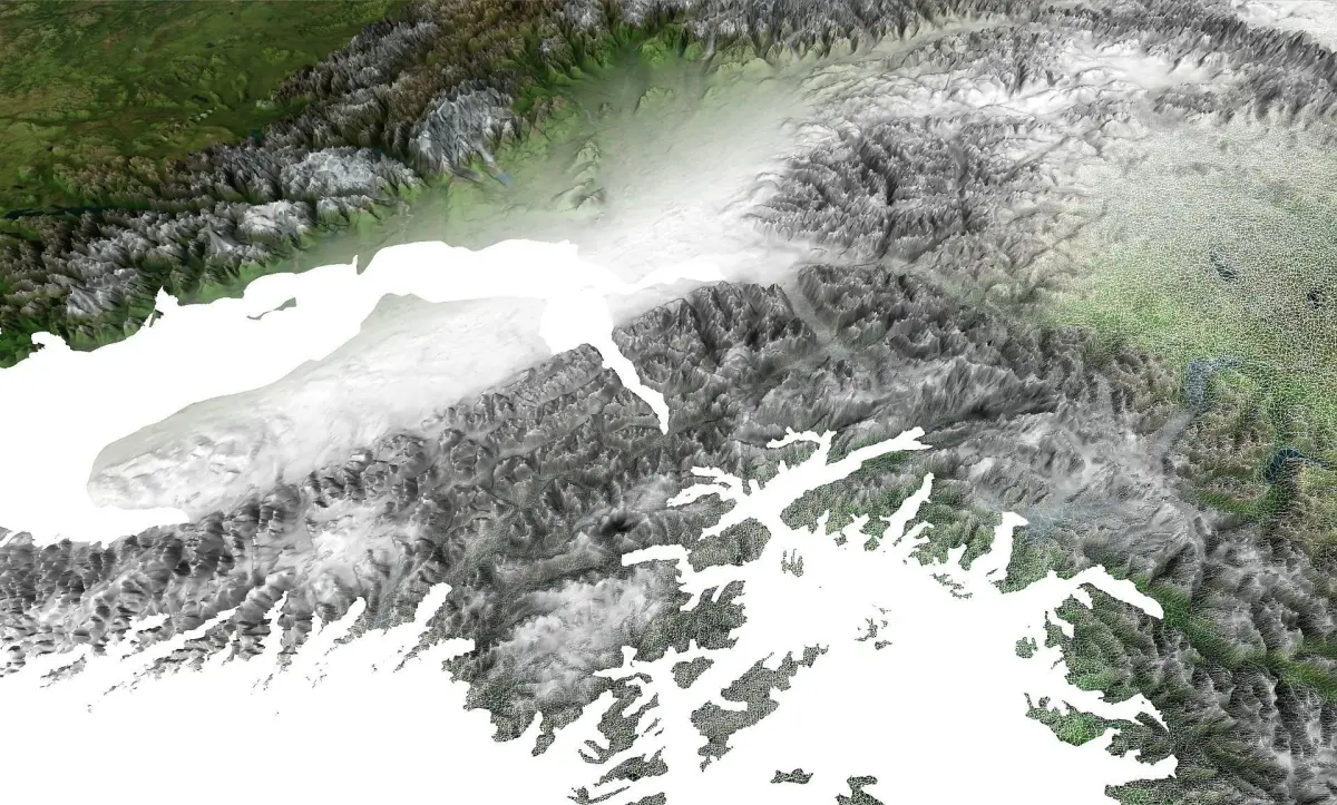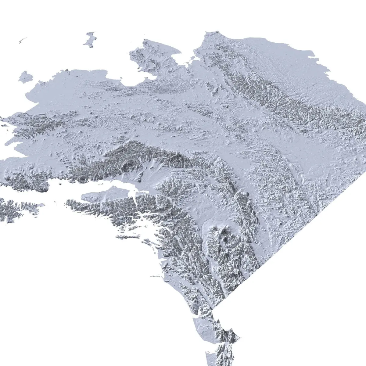 A Lamberts Conformal Conic projection was used with 500 m resolution. High detailed natural texture have resolution up to 6.5k x 4.8k pixels. The height of the relief is increased 5 times (exclude STL file).STL files in three levels of detail: