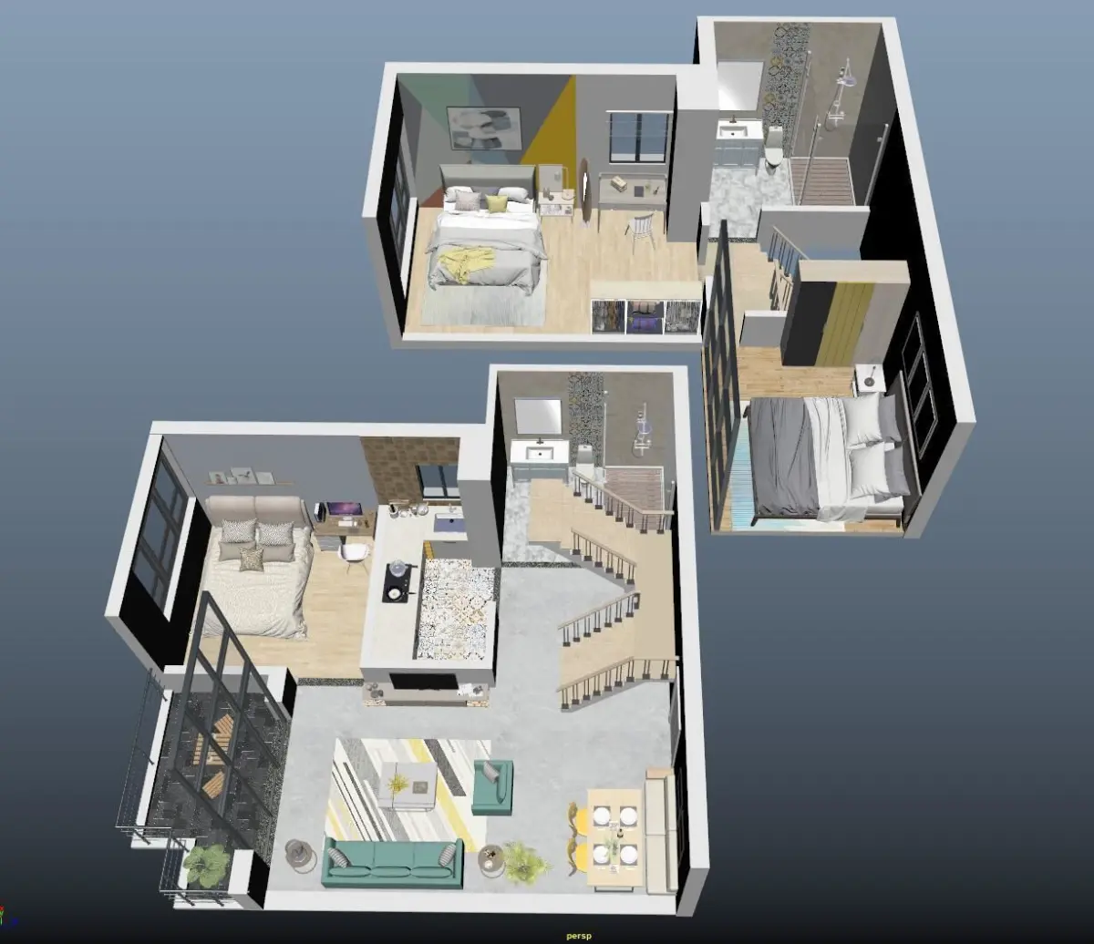 High details floorplan, maya version has lighting, materials, contact me if you are missing or have any questions.
