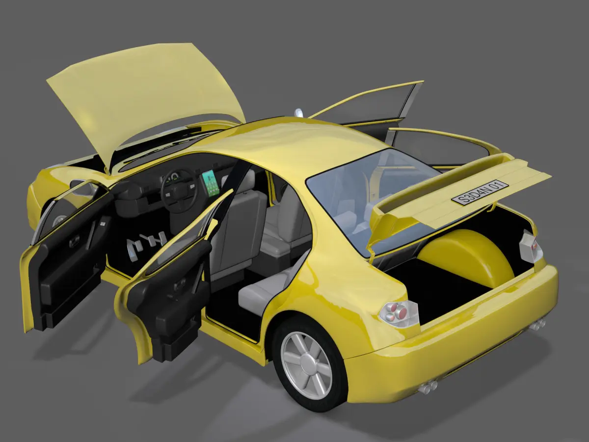 -Product Description: High-end 4 door sedan car 3D model, in 4 formats (2 of them rigged). Includes .jpg files with basic textures.Original model, perfect to avoid copyright problems.