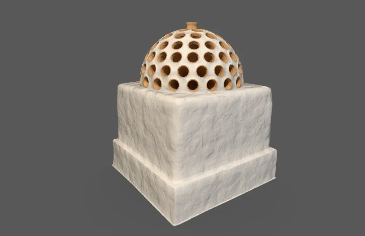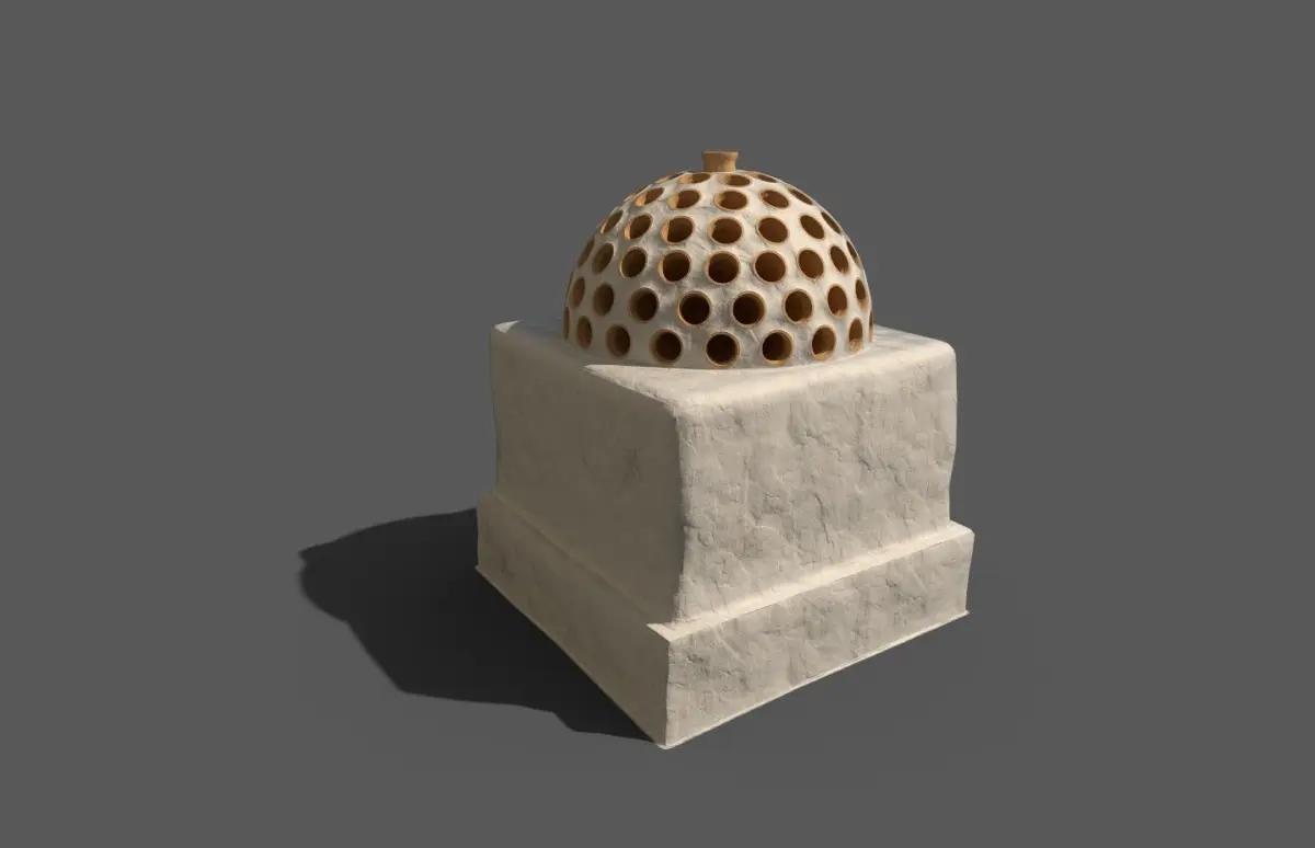 Low-poly historical reconstruction of a tiled stove or masonry heater from the high medieval period. In those early types the tiles are shaped like cups, which indent to the stoves center to allow for more heat radiation. This kind of stove was fired from behind, from another room, so the living room stays smoke free.