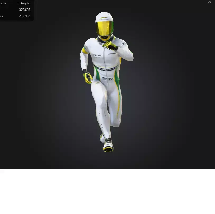This high-quality 3D model features a futuristic racing athlete captured in a powerful sprinting pose. Designed with premium detail and clean topology, the character wears an advanced motorsport suit inspired by classic racing aesthetics, incorporating sleek white materials, aerodynamic paneling, and vibrant accent colors. The reflective visor helmet adds a professional motorsport feel, making the model suitable for animation, advertising, gaming, and visualization projects.