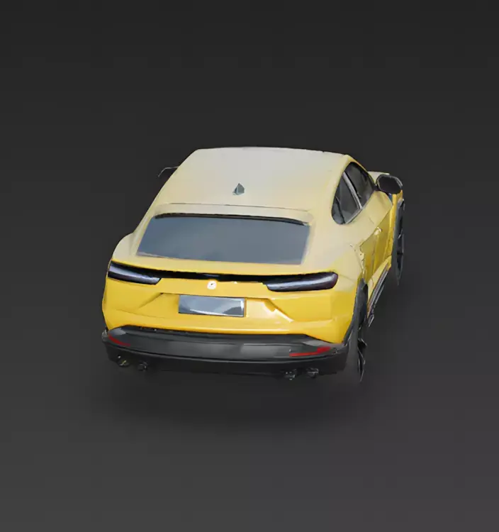 Vibrant Yellow Paint The body is painted in a bright, eye-catching yellow. This energetic color is often used on sports cars to make them stand out on the road and highlights the sharp, angular lines of the vehicle's design.