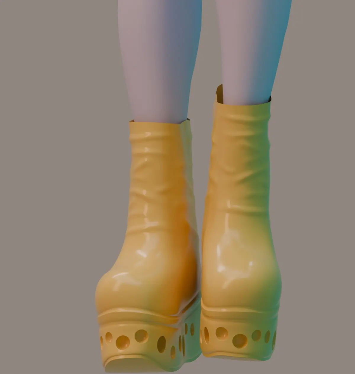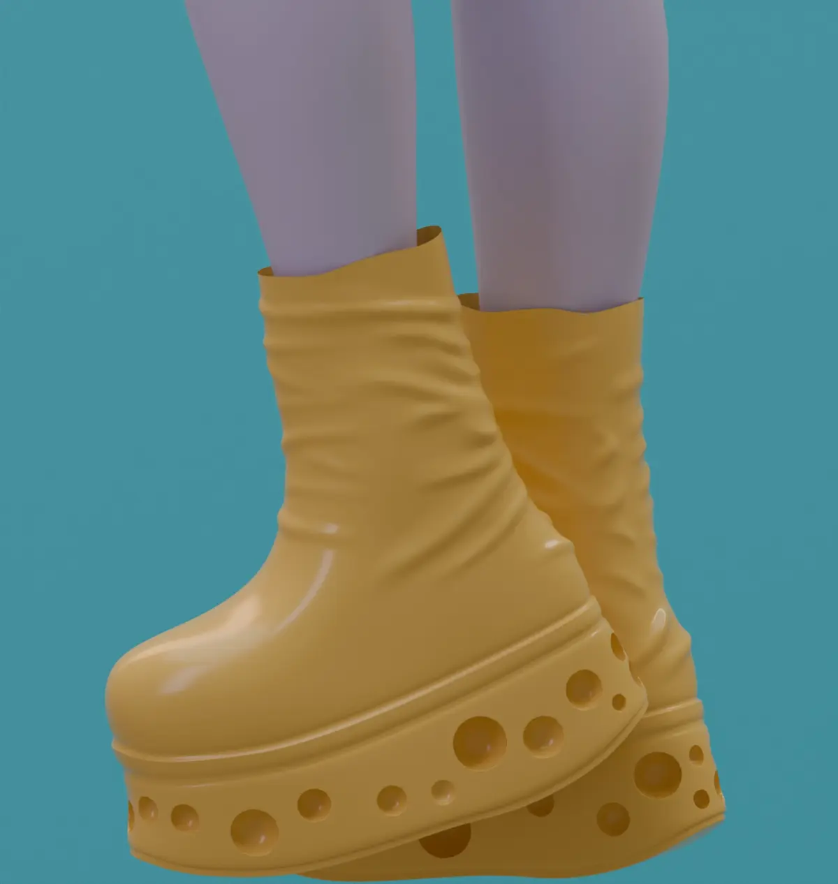Cheese Boots. High and Chunky Platform. Made in Blender.