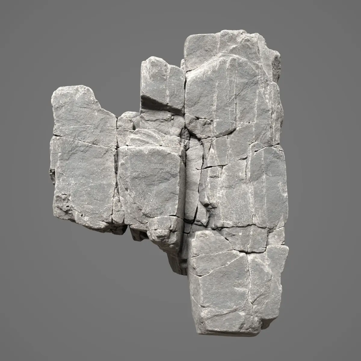 This product consists of 8 3D models of rock formations. The shape of this rock is relatively flat with many cracks, and the edges are quite sharp, giving a sense of hardness to the rock. The details of the model are depicted in all different angles, so you can replicate them, then rotate, flip, scale to combine them and create a variety of shapes.