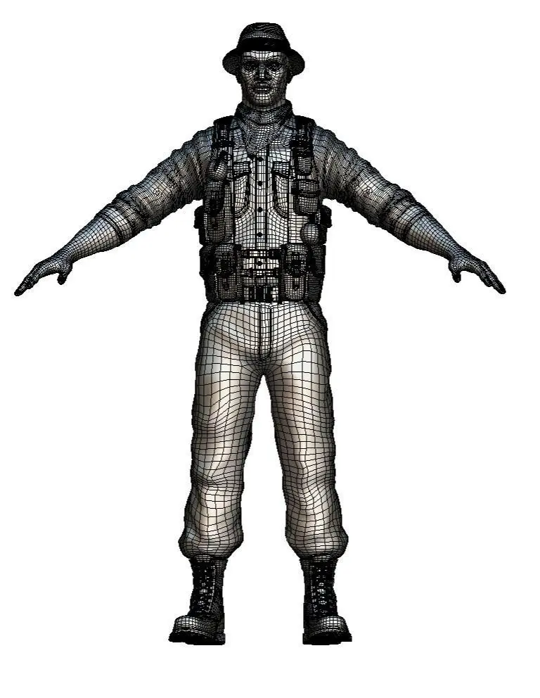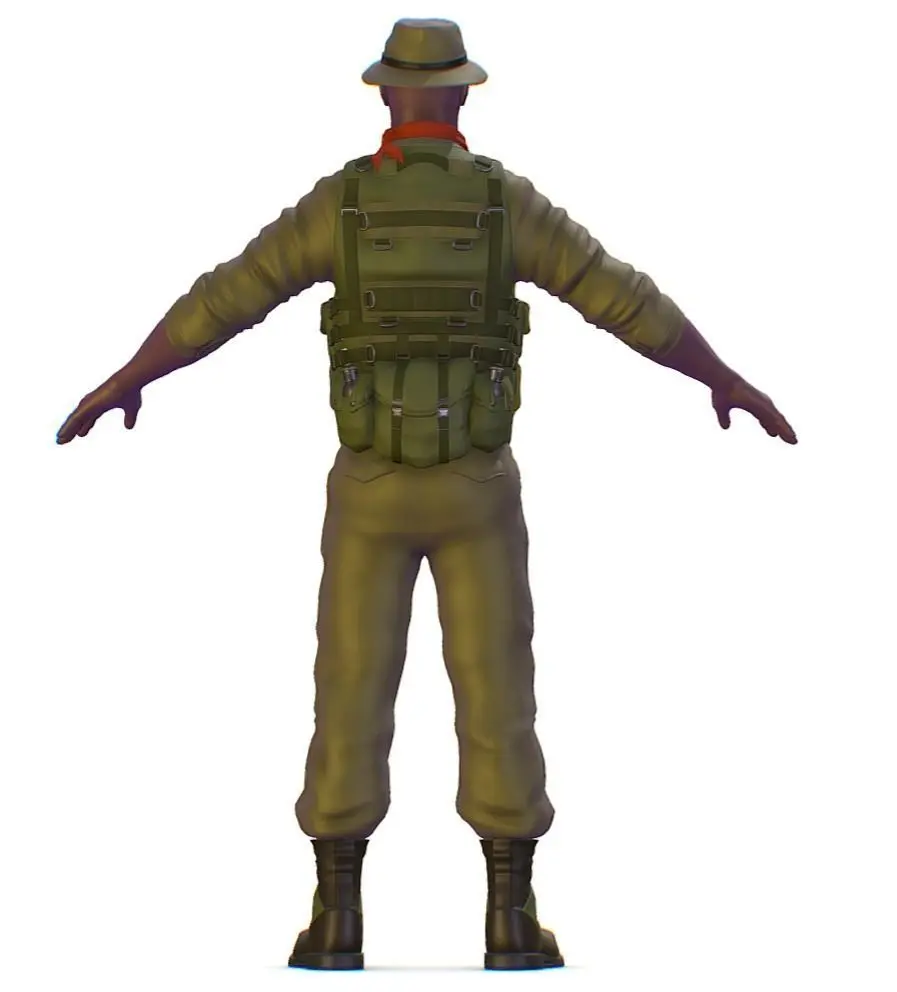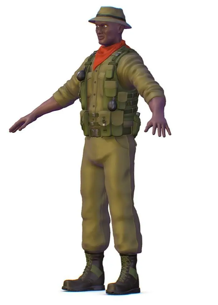 High Poly Black Man Soldier Green Armor Low-poly 3D model