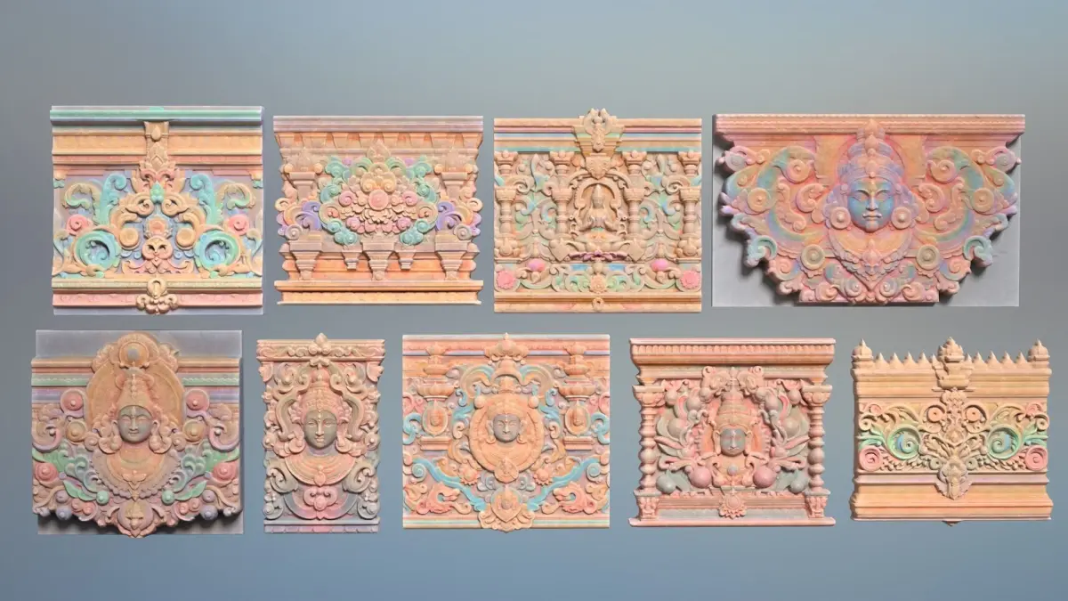 - Number of models: 9 3D models of High poly Indian Temple Walls