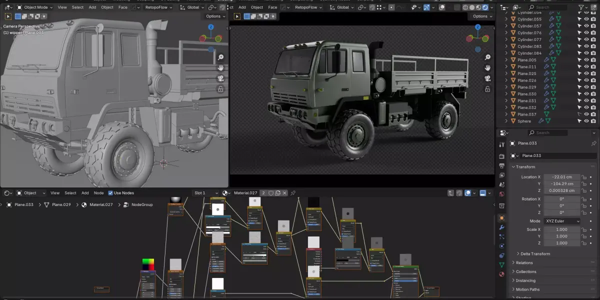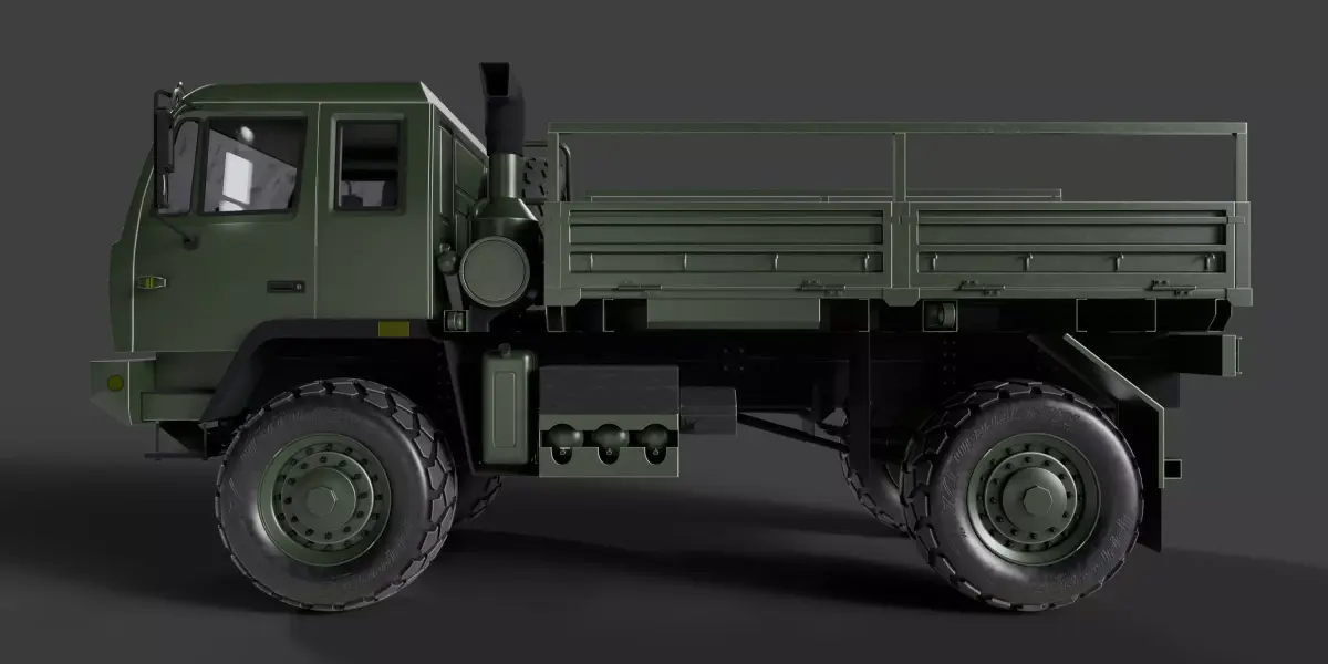 This is a highly detailed high-poly 3D model of a military tactical cargo truck, inspired by the U.S. Army’s FMTV M1078 2.5-ton 4x4. The model is ideal for realistic visualization, cinematic shots, industrial mockups, or military simulations.