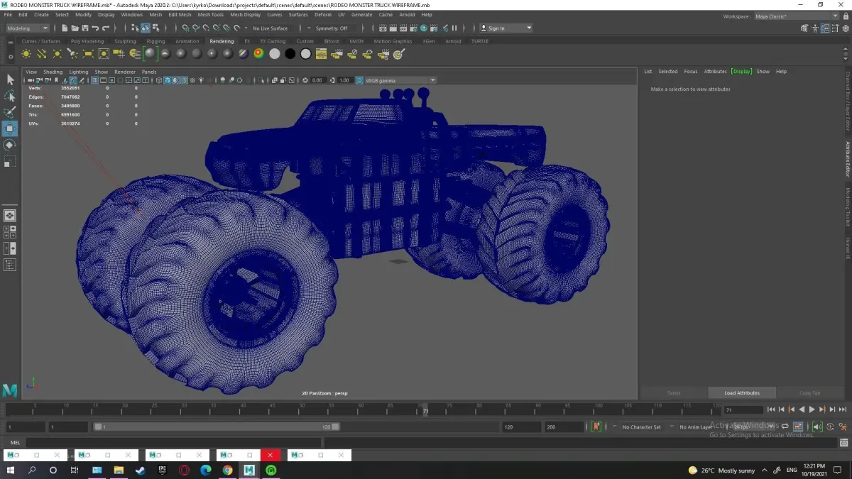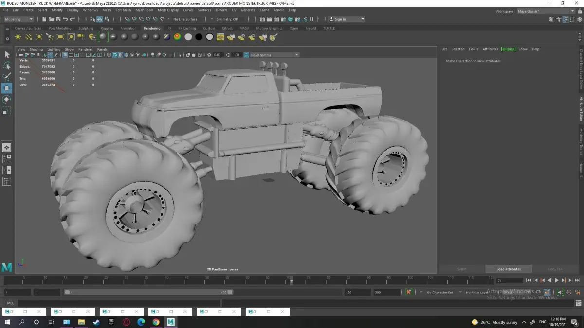 This is a high poly PBR version of the monster truck shown on the Rodeo album cover in 2015 by Travis Scott. It has 3495800 faces and 3552051 vertices and it is meant for commercial use of any kind. Dowload all of the texture zips including the hdri so that everything shows up correctly in the maya scene. You can right click and open the texture files with winrar or 7zip to extract. In addition I have attached a folder of matching HDRI's to the thumbnail I have uploaded. I have also attached a preview for further information, if you have any more questions please contact me on YouTube I will respond fast. Lastly place the maya file in your projects/defaults/scenes directory.