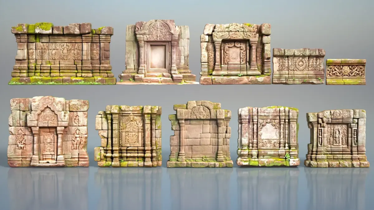This product consists of 10 3D models of High poly ruin Temple Walls. These models are decorated with patterns and characters, following the ancient Khmer style. You can use them to enhance the liveliness of your project.