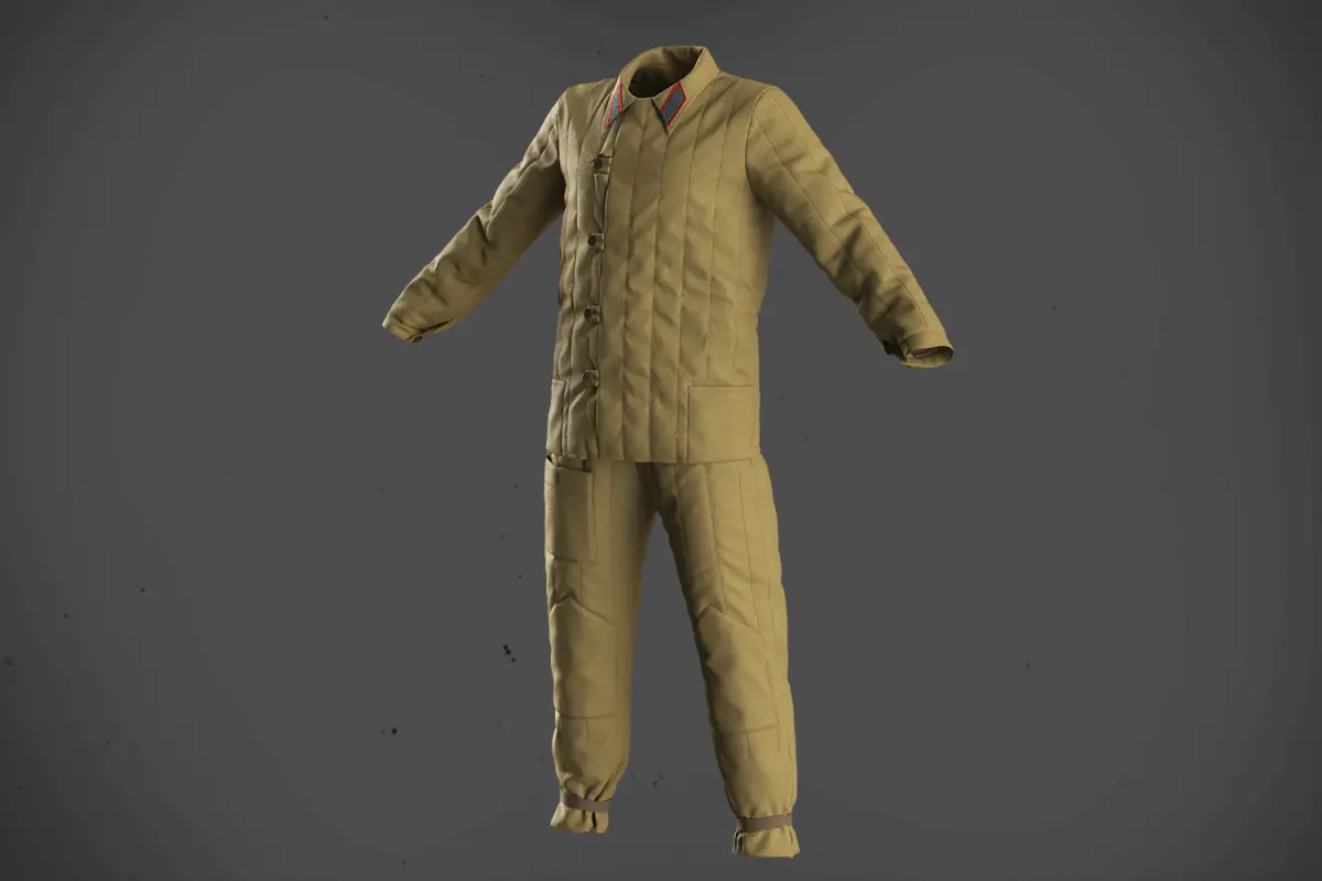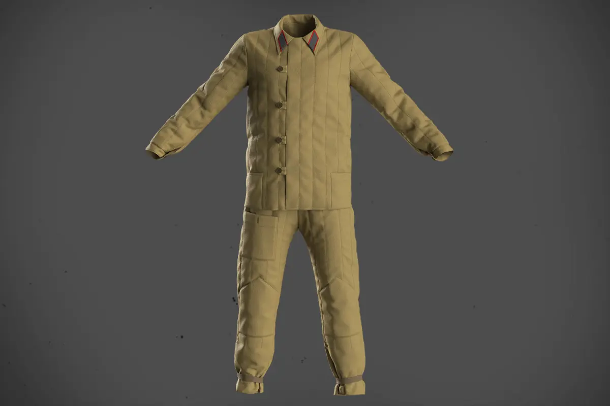 3D model clothing high-poly Soviet Padded Costume Military Uniform (Jacket + Pants)UV maps in 4K resolution (Diffuse, Metalness, Normal, Roughness).Avatar - DAZ 3D Genesis Male 8.1Project files are available for download in *zprj, *fbx, *obj.