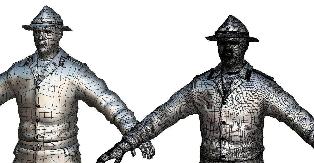 High Poly Subdivision Man Old USSR Soldier Low-poly 3D model