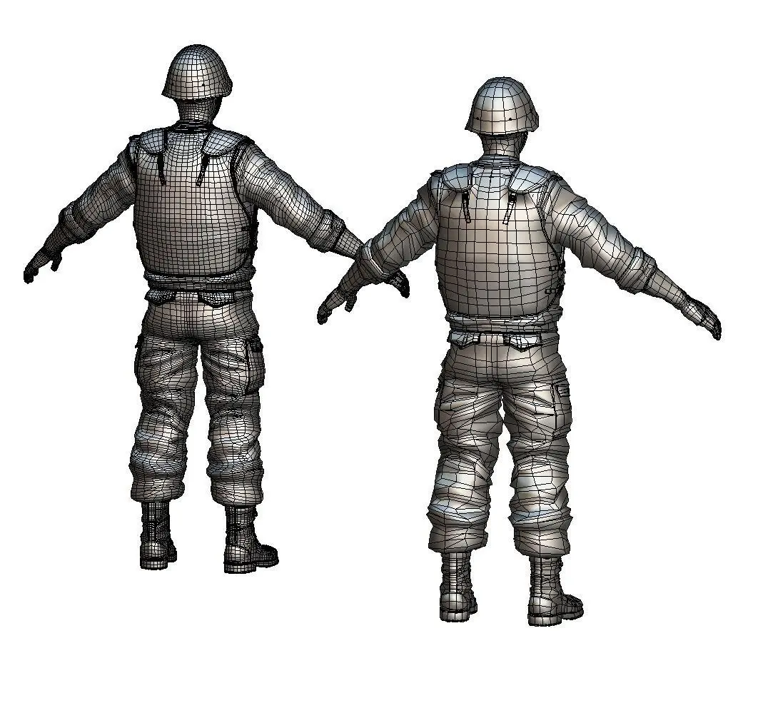 High Poly Subdivision Man Old USSR Soldier Low-poly 3D model