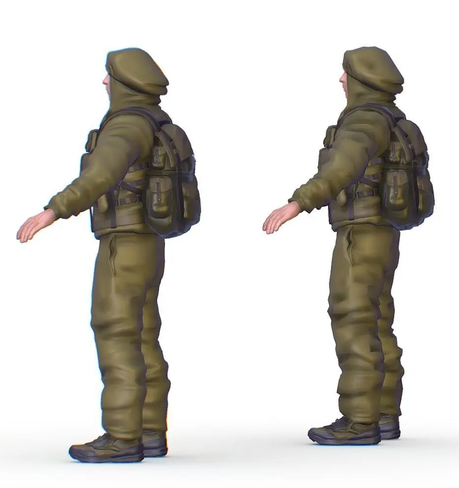 High Poly Subdivision Man Old USSR Soldier Low-poly 3D model