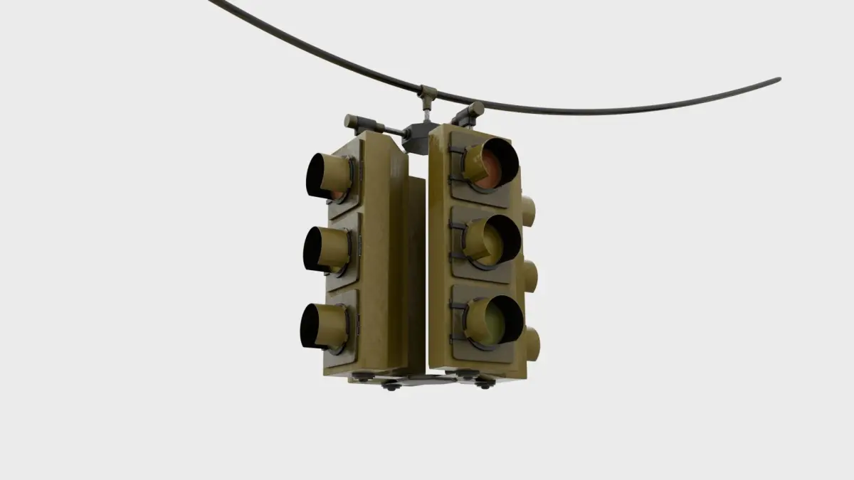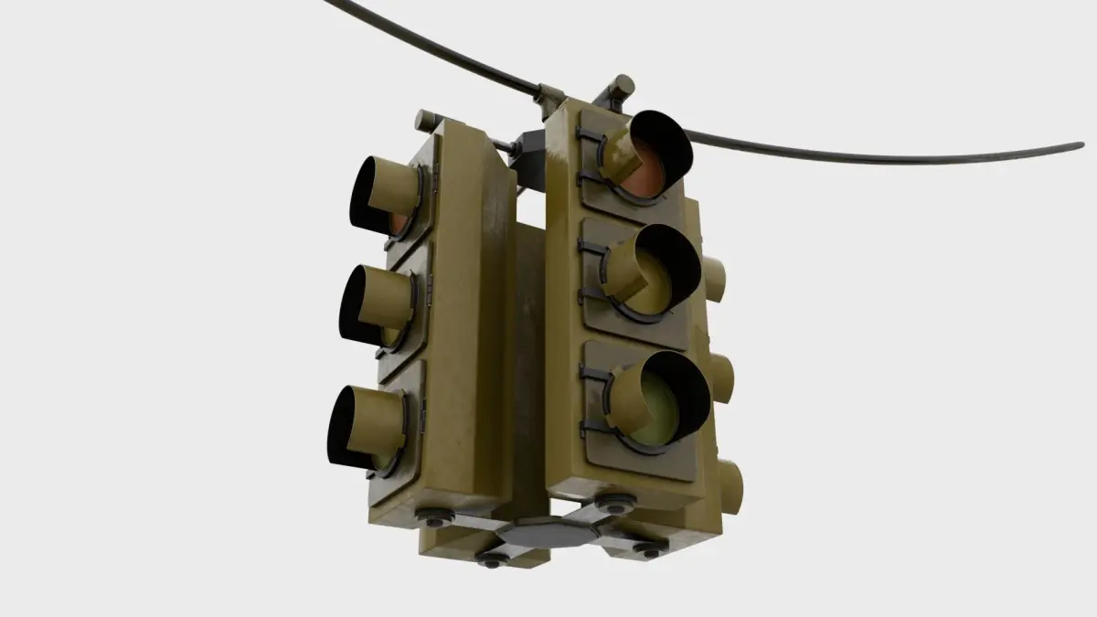 High Poly hanging traffic light which points in four directions (Formats= fbx, obj, stl). Base-Color, Rougness, Metallic, Normal and Height Maps are included. Should you need a lower poly unsubdivided version or have questions of any kind please feel free to contact me.