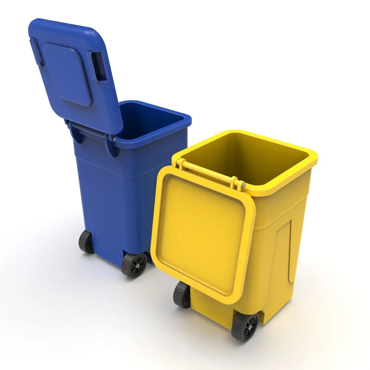 Highly detailed 3D model of a wheeled outdoor garbage bin, designed for realism and versatility in professional environments such as animation, architectural visualization, cinematics, and VFX.