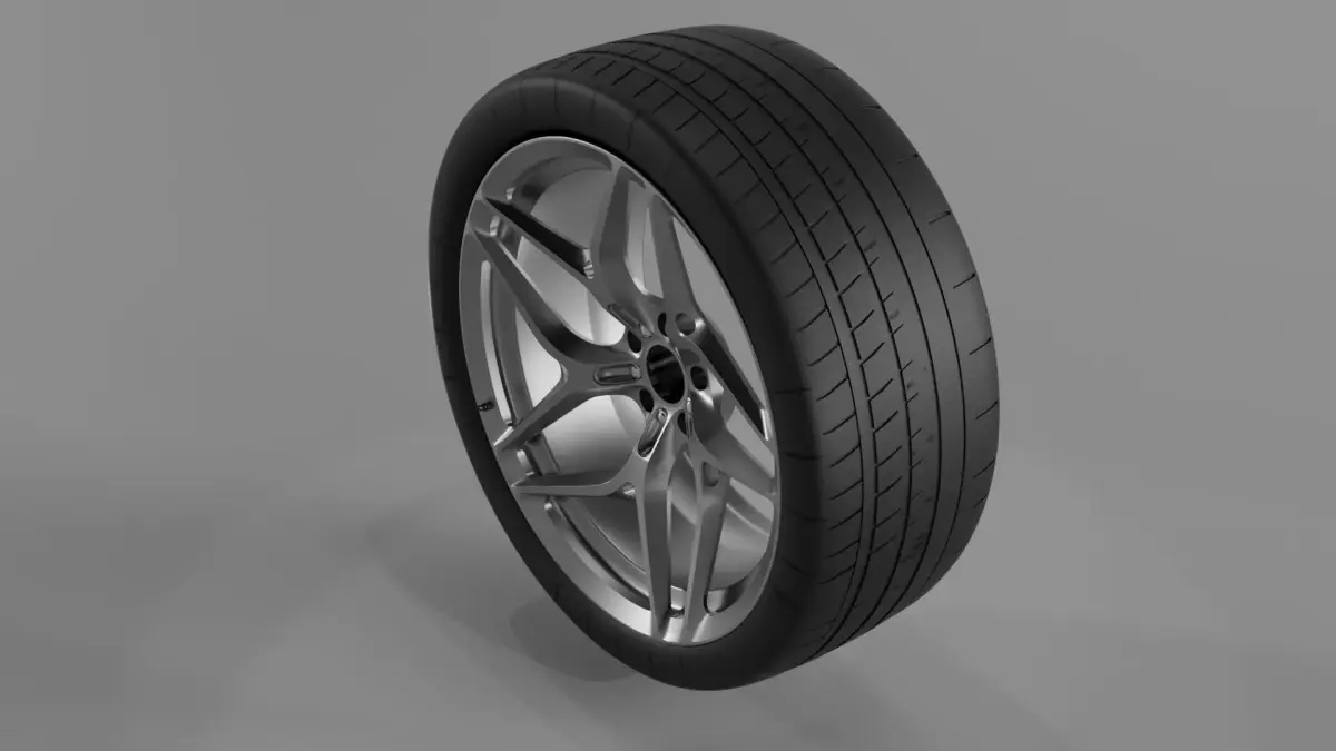 This is a high-quality 3D model of a car tire and rim, designed with clean geometry and realistic proportions. The model is created with attention to detail, making it suitable for rendering, animations, product visualization, and automotive projects.