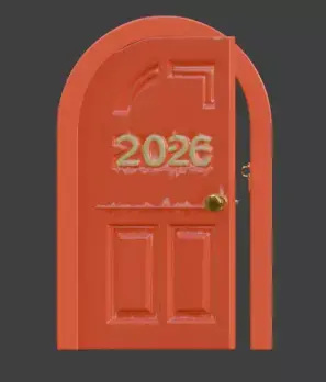 Tagsnew year, 2026, door, celebration, festive, holiday, red, gold, glowing, cartoon, stylized, symbolic, prop, 3d model