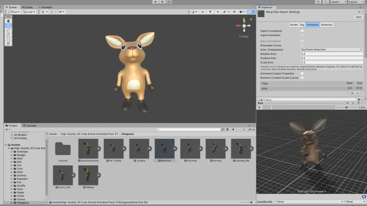 High-Quality 3D Cute Kangaroo - Animated for Games Low-poly 3D model