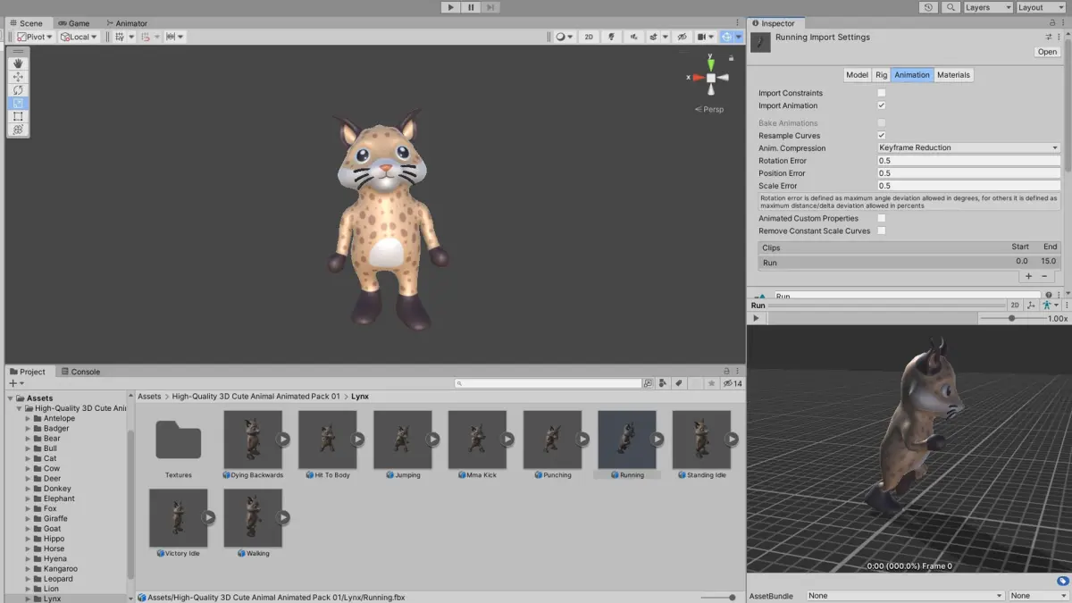 High-Quality 3D Cute Lynx - Animated for Games Low-poly 3D model