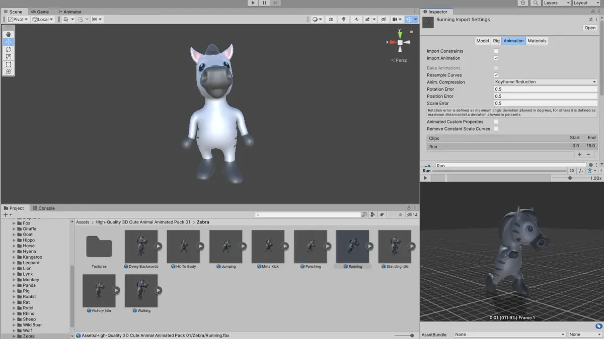 High-Quality 3D Cute Zebra - Animated for Games Low-poly 3D model