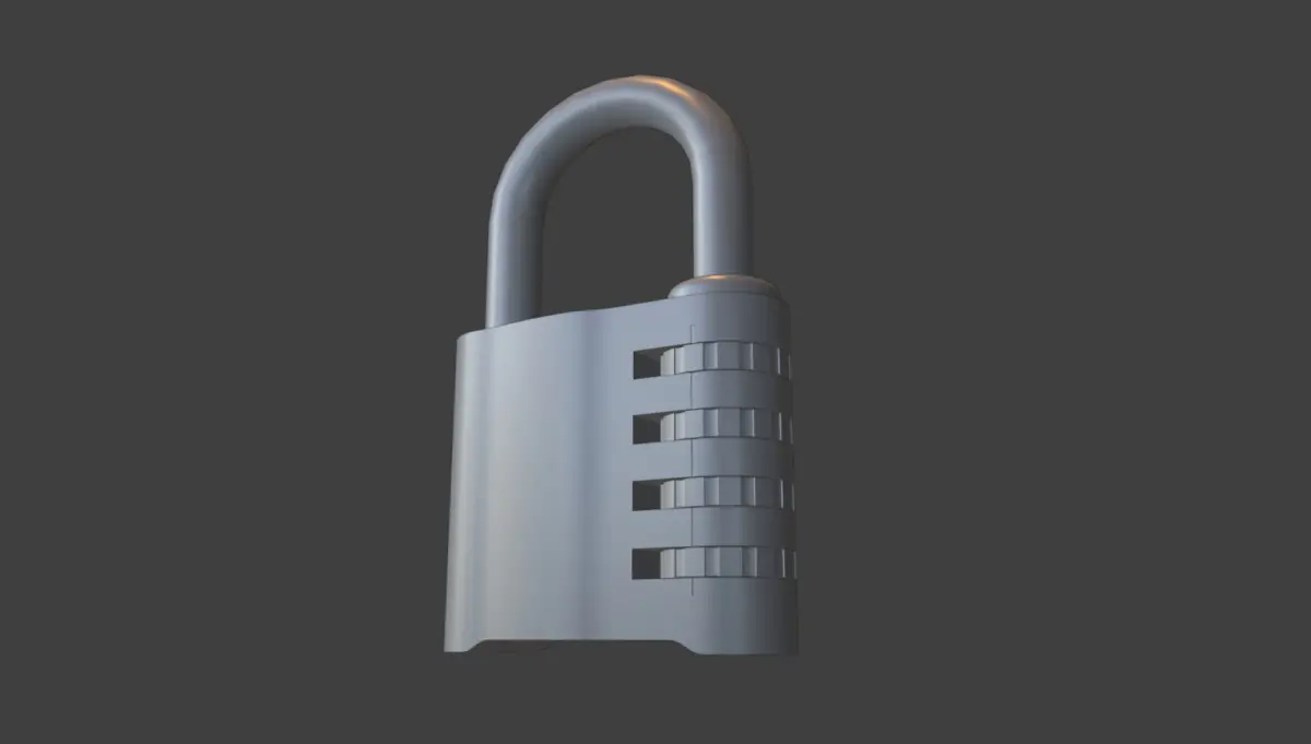 This is a highly detailed 3D model of a combination padlock, perfect for use in product visualizations, architectural scenes, games, or security-themed projects. The model features a realistic brass body with intricate combination dials and a polished metal shackle, all crafted with precision to ensure a professional and authentic appearance.