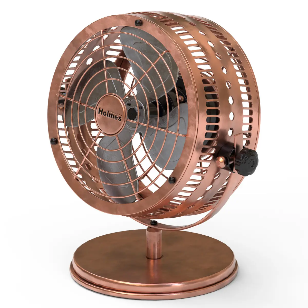 This Copper 12 Inch Oscillating Desk Fan from Status allows you to direct your fan comfortably in any direction.