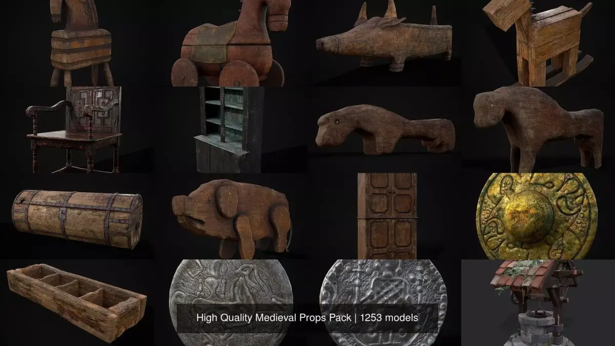 High Quality Medieval Props Pack - Includes 1253 Models - High Quality Realistic Medieval Style 3D Models - Files Include FBX and OBJ. Includes PBR Texture in 4096 x 4096. - Maps include : Basecolor, Normal, Roughness, Height and Metallic. Some models include AO, SSS, Opacity and/or Emmisive maps. All Preview renders were done Marmoset Toolbag 4 Scaled to real world scale. Customer Service Guaranteed. From the Creators at Get Dead Entertainment. Please like and Rate! Follow us on FaceBook and Instagram to keep updated on all our newest models.