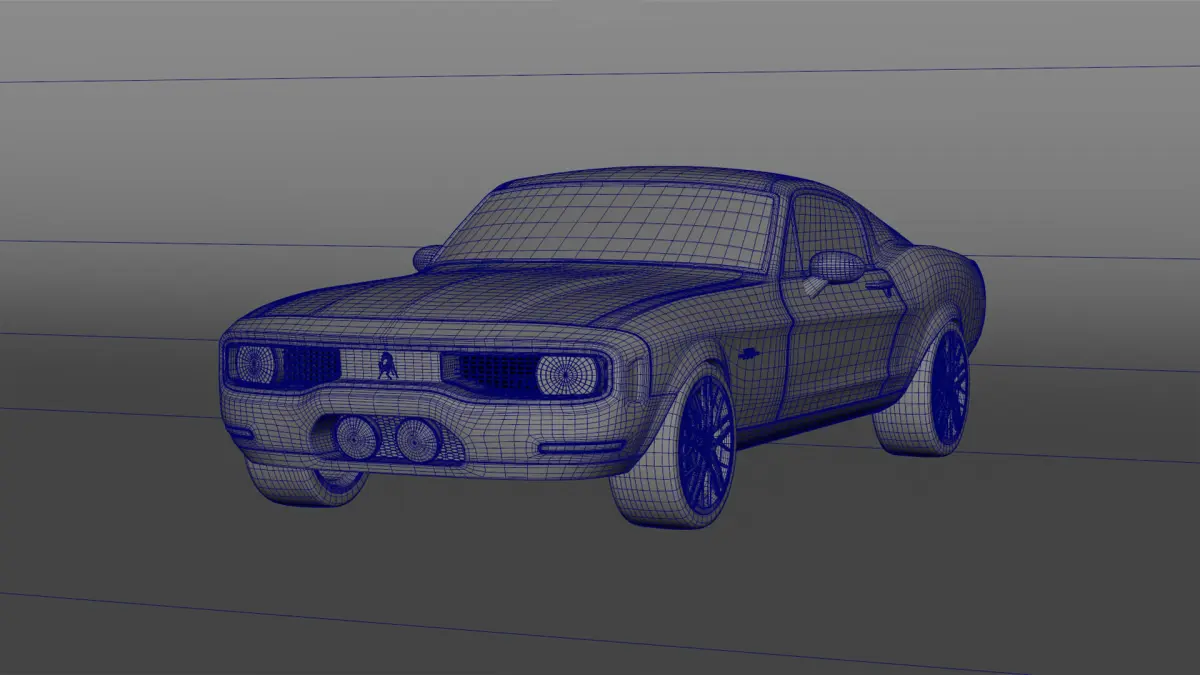This is a high-quality 3D model of a muscle car, inspired by the design language of American performance vehicles. Built for flexibility, it includes clean topology, proper UVs, and fully customizable textures.