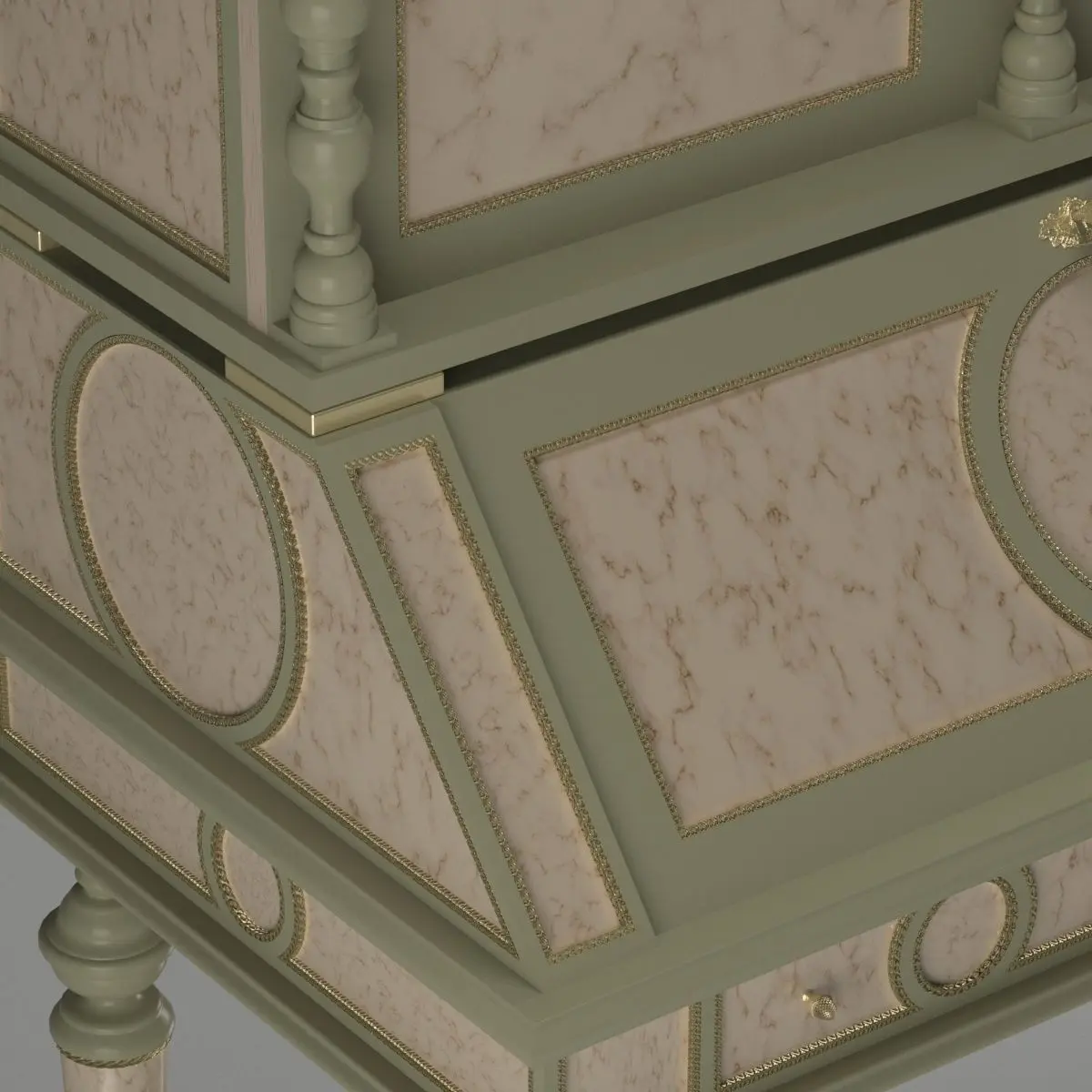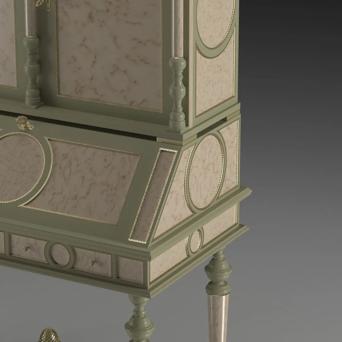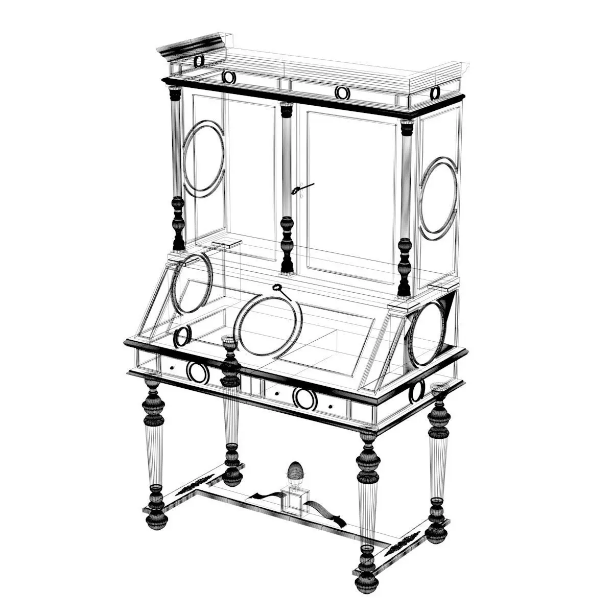 This is a very detailed model of a classical writing desk. You can change materials to obtain the look you want, all parts are indipendent. The preview file is obtained using VRay Next GPU renderer in brute force mode. A lot of displacement details are present in this model.